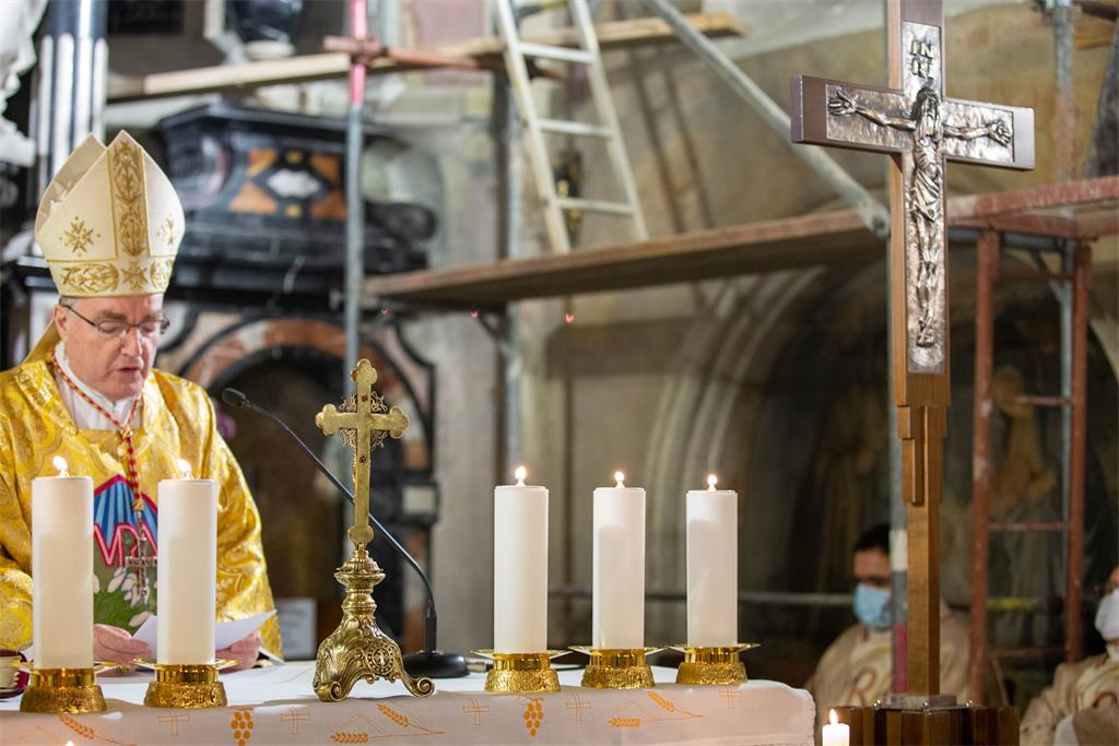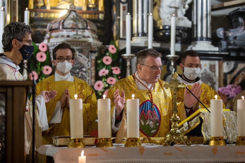 U posljednjem dijelu homilije Kardinal se nadovezao na posebne okolnosti života pandemije koronavirusa, razmotrivši prizor iz Evanđelja po Ivanu kada Isus s Križa obostrano povjerava Mariju ljubljenome učeniku, ali i njega Mariji. – Postavimo pitanje: Zašto Marija i ljubljeni Učenik stoje podno Križa? Naime, kada se ne može ništa drugo učiniti, ostaje samo ljubav. Ona je tada jedina snaga sposobna preći prag napuštenosti i smrti, jer je ljubav jača od smrti i tko ljubi prelazi iz smrti u život. Podno Križa ispunilo se sve: povjeravanjem sina majci i majke sinu. Taj prizor označava čas prijelaza od Isusa na zajednicu njegovih učenika i učenica, to jest Crkvu. »I od toga časa uze je učenik k sebi« (Iv 19, 27). Podno Križa ostvareno je trajno čudo ljubavi između Isusove braće i sestara i Blažene Djevice Marije kao najuzvišenija Isusova oporuka. Mariji, koja je postala Majkom vjernika, obraćaju se ljudi, njezini sinovi i kćeri, kao sigurnom utočištu. – poručio je kardinal Bozanić.