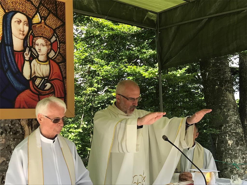 Središnje misno slavlje u 11,30 sati predvodio je ispred sljemenske kapele isusovac dr. sc. Niko Bilić, profesor na Filozofskom fakultetu Družbe Isusove i predvoditelj mnogih duhovnih vježba i redovničkih slavlja, u koncelebraciji sa sljemenskim župnikom p. Franjom Koradeom, župnikom iz Kraljevog Vrha vlč. Ivanom Hrastovićem te još trojicom svećenika.