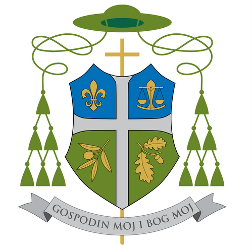 Ispod grba je ispisana ispovijest vjere apostola Tome: »Gospodin moj i Bog moj.« Pitanje koje upućuje arkanđeo Mihael, istina koja prolama povijest, u svjetlu prisutnosti Uskrsloga dobiva odgovor vjere koji svakoga vjernika upućuje da svoju vjeru jača u zajedništvu apostolske vjere, u zajedništvu s apostolskim nasljednicima koji su u križu prepoznali ljepotu uskrsnoga jutra.