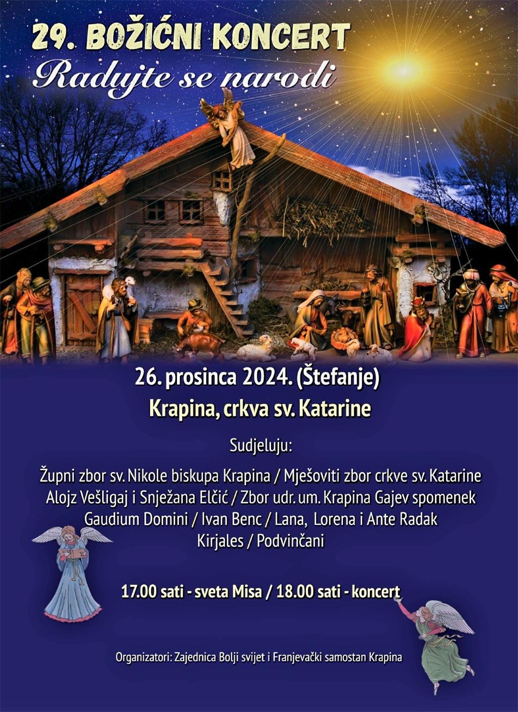 "Radujte se narodi", 29. Božićni koncert održat će se tradicionalno na blagdan sv. Stjepana, 26. prosinca 2024. u crkvi svete Katarine u Krapini.