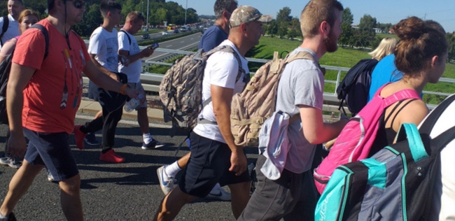 Uz zahvalu i vapaj u srcu, a molitvu i pjesmu na usnama, hodočasnicima su dva sata hoda do Ščitarjeva, gdje su ih na ulazu u mjesto dočekali konjanici - mladići obučeni u uniforme kakve su nosili vojnici rimske Andautonije, prošla kao tren. Kao i brojnih prijašnjih godina domaćini ovog drevnog antičkog grada pripremili su hodočasnicima doručak koji su im nudili s osmjehom na licu. Ove godine, zbog specifičnih uvjeta, hodočasnicima su podijeljeni paketi s obrocima. Nakon doručka hodočasnici svih dobi - predškolci, školarci, mladi, oni srednje dobi i stariji, poznati i manje poznati Velikogoričani - nastavili su autoputom dalje za križem. S krunicom u ruci, u molitvi, pjesmi, razgovoru i tišini hodočasnici, netko po prvi, netko deseti, nosili su svoje zahvale, preporuke, nakane i molbe put svetišta u Mariji Bistrici. Ljepota zajedništva i briga jednih za druge liječila je žuljeve, a bolne i umorne noge činila snažnima i ustrajnima.
