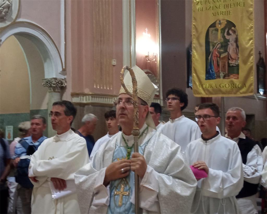 „Na tragu današnjega Evanđelja lijepo je vidjeti vas, velikogoričke vjernike koji ste 31. put došli dati hvali Bogu po susretu s Marijom. Rado preuzimam Apostolove riječi: 'Zahvaljujem Bogu za vas…' Marija nas majčinski uči kako čuvati spomen i kako veličati Gospodina. Evanđelist je zapisao da je Marija, nakon Isusova rođenja u čudesnoj betlehemskoj noći; nakon pjesme anđela i dolaska pastira, u sebi pohranjivala te događaje i prebirala ih u svome srcu. Pohranjivala i prebirala događaje, nakon što je s pouzdanjem prihvatila Božju riječ, njegovu volju. To je odlika spomena koji prelazi u zahvalnost. Marija nas i danas prihvaća i uči kako zahvalno živjeti Kristovu blizinu i put spasenja. Teško je sažeti sve o čemu ste vi prebirali, razmišljali i razmišljate na ovome hodočašću. Kao što sam u uvodu rekao, puno je osobnih nakana, prošnja, nadanja, ali je temelj zajednički, lako poveziv s navještajem Radosne vijesti. Nismo li prije trideset i jednu godinu, radujući se najprije slobodi i novomu oduševljenju u Hrvatskoj, brzo osjetili bol, ranjenosti, isključenost i bespomoćnost? Nismo li vapili da nas se čuje, da netko ublaži patnje? Oni koji su to mogli učiniti političkim sredstvima nisu učinili puno, ali je bilo puno onih koji su bili u nas milosnim srcem, molitvama i darovima.