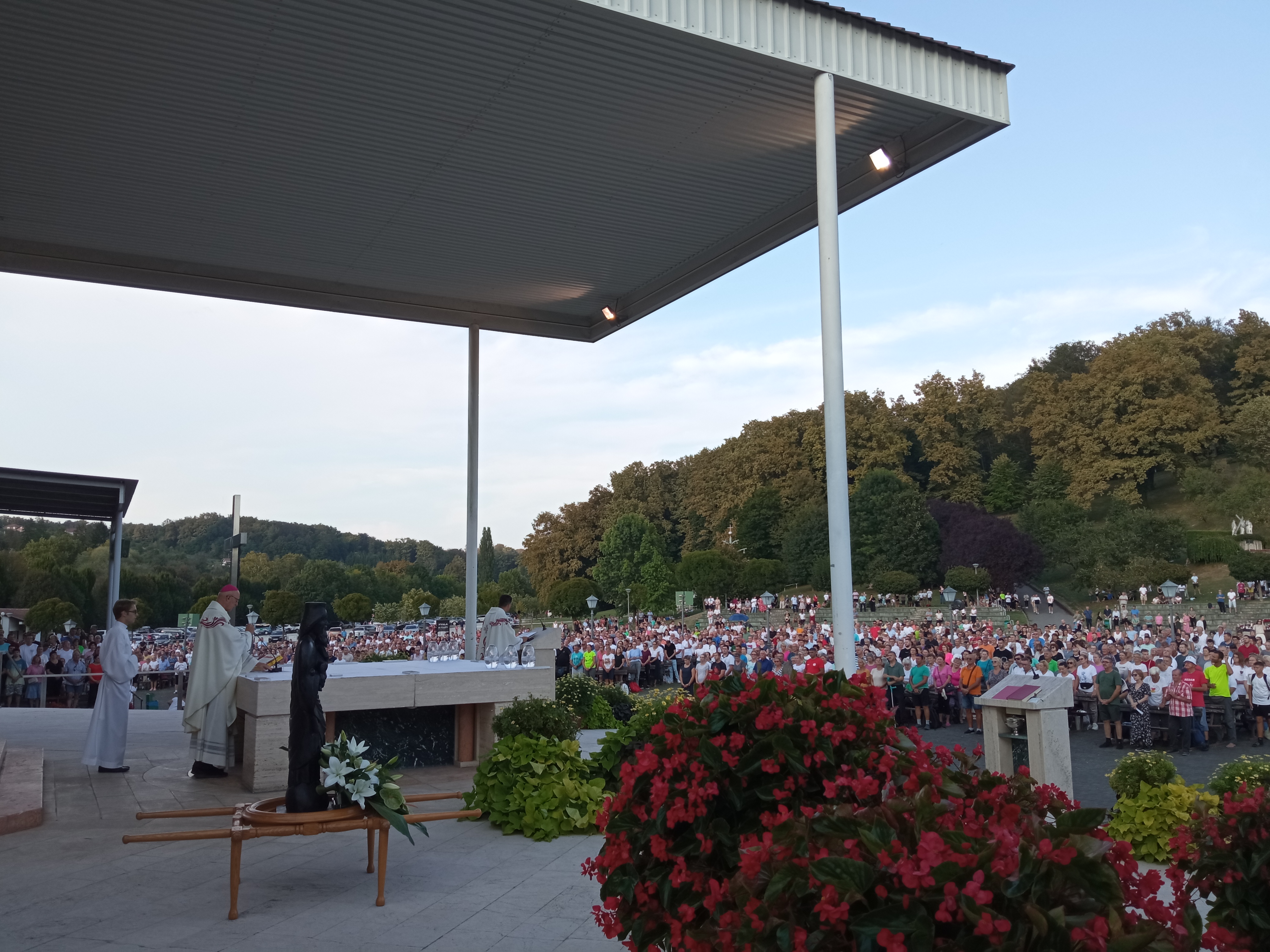 Vrijeme do središnjeg događaja hodočašća - euharistijskog slavlja - hodočasnici su ispunili pristupajući sakramentu ispovijedi, odmarajući i okrepljujući tijelo ili moleći Križni put uspinjući se na Kalvariju. Crkva na otvorenom bila je ispunjena mnoštvom vjernika, onih koji su pristigli pješice, kao i onih koji su automobilima došli kako bi sa svojim obiteljima sudjelovali na euharistiji. U zajedništvu s pristiglim svećenicima misu u 18 sati predvodio je apostolski nuncij u Republici Hrvatskoj mons. Giorgio Lingua.