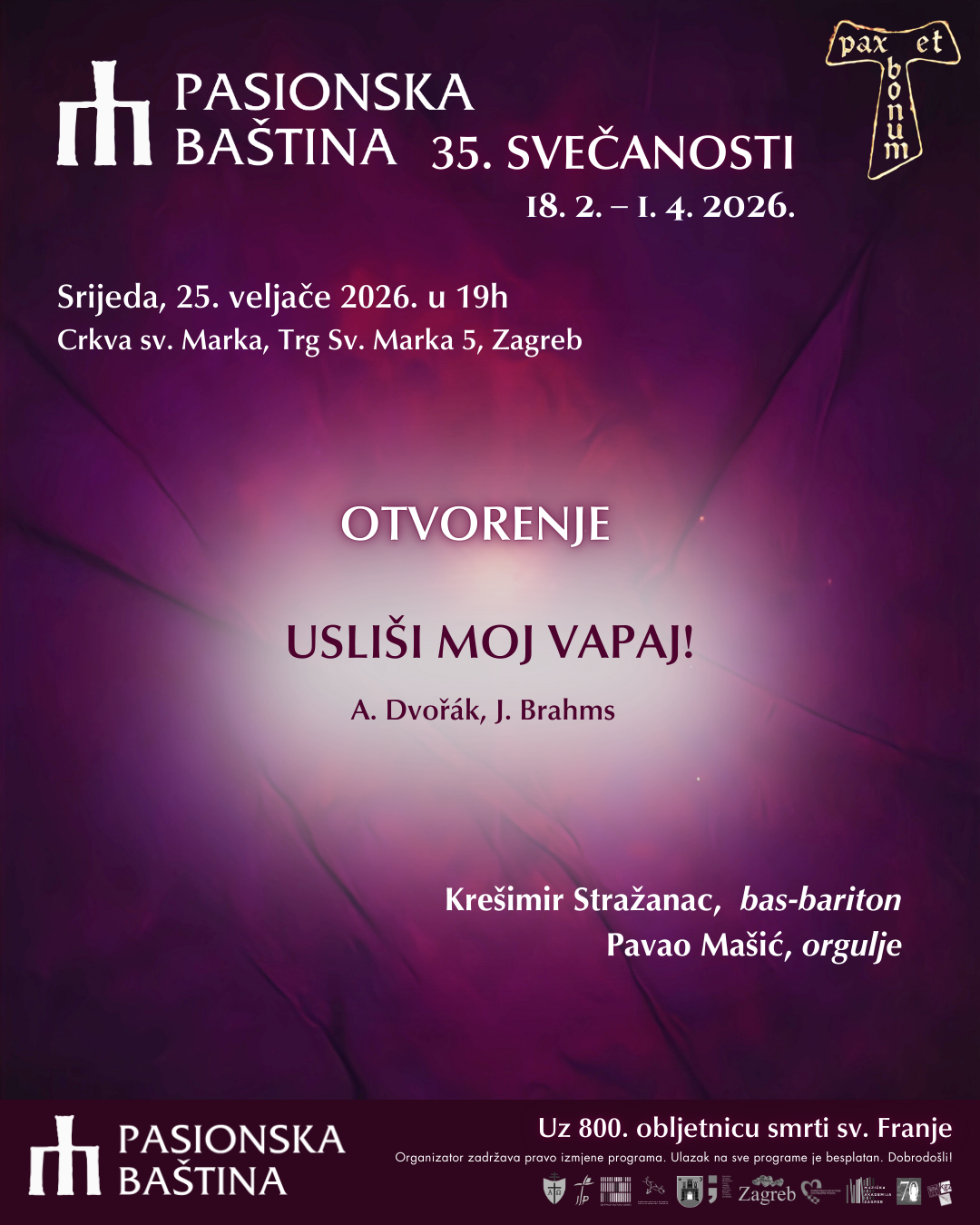Zagrebačko otvorenje slijedi u srijedu 25. veljače nastupom bas baritona Krešimira Stražanca i orguljaša Pavla Mašića u crkvi sv. Marka.
