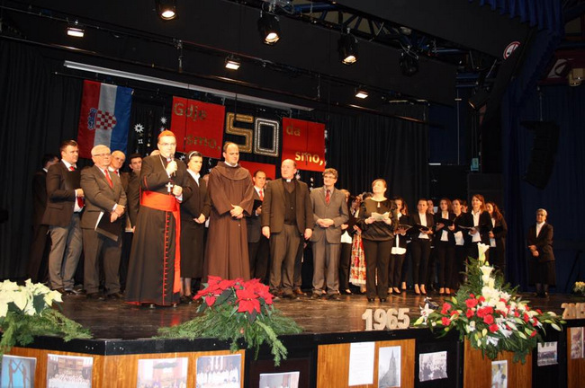 Hrvatska katolička župa (HKŽ) u Frankfurtu na Majni proslavila je 5. i 6. prosinca 50. obljetnicu djelovanja. Svečano zahvalno misno slavlje na hrvatskom i njemačkom jeziku u punoj katedrali Sv. Bartolomeja u Frankfurtu predvodio je zagrebački nadbiskup kardinal Josip Bozanić u zajedništvu s pomoćnim biskupom biskupije Limburg Thomasom Löhrom, provincijalnim ministrom Franjevačke provincije Presvetoga Otkupitelja sa sjedištem u Splitu fra Joškom Kodžomanom, ravnateljem dušobrižništva za Hrvate u inozemstvu dr. Tomislavom Markićem, dekanom grada Frankfurta dr. Johannesom zu Eltzom, voditeljem HKŽ Frankfurt fra Željkom Ćurkovićem, gvardijanom Franjevačkog samostana u Sinju fra Petrom Klapežom, te s još šestoricom redovničkih i biskupijskih svećenika. Na misnom slavlju, sa skupinom sestara pristiglih iz domovine od kojih je više njih djelovalo u toj hrvatskoj župi, sudjelovala je provincijalna predstojnica Školskih sestara franjevki Krista Kralja iz Splita s. Leonka Bošnjak Čovo. Misnom slavlju pribivao je i Ernst Gerhardt iz Gradskog poglavarstva Frankfurta. Na misi je sudjelovalo veliki broj mladih u hrvatskim narodnim nošnjama.