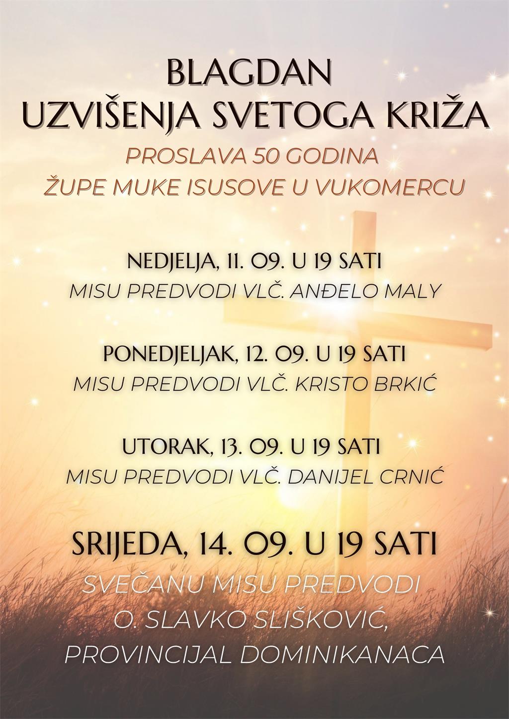 Na svečanom misnom slavlju na sam blagdan Uzvišenja svetoga Križa, 14. rujna u 19 sati, prikazat ćemo misnu žrtvu za pokojnog vlč. Josipa Jakšića, prvog župnika Župe Muke Isusove. Misu predvodi o. Slavko Slišković, provincijal Hrvatske dominikanske provincije.
