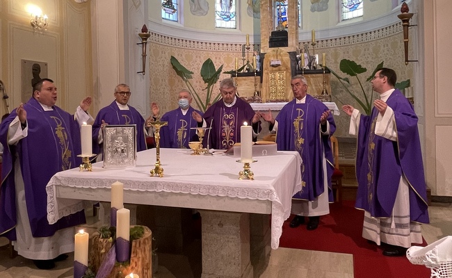 Svečanu misu u župnoj crkvi Presvetog Trojstva predvodio je umirovljeni varaždinski biskup Josip Mrzljak, a propovijedao je postulator kauze bl. Alojzija Stepinca mons. dr. Juraj Batelja. U koncelebraciji su bili i krašićki župnik vlč. Ivan Vučak, rektor Međubiskupijskog sjemeništa u Zagrebu preč. Matija Pavlaković i umirovljeni svećenici vlč. Stjepan Penić i vlč. Alojzije Burja.