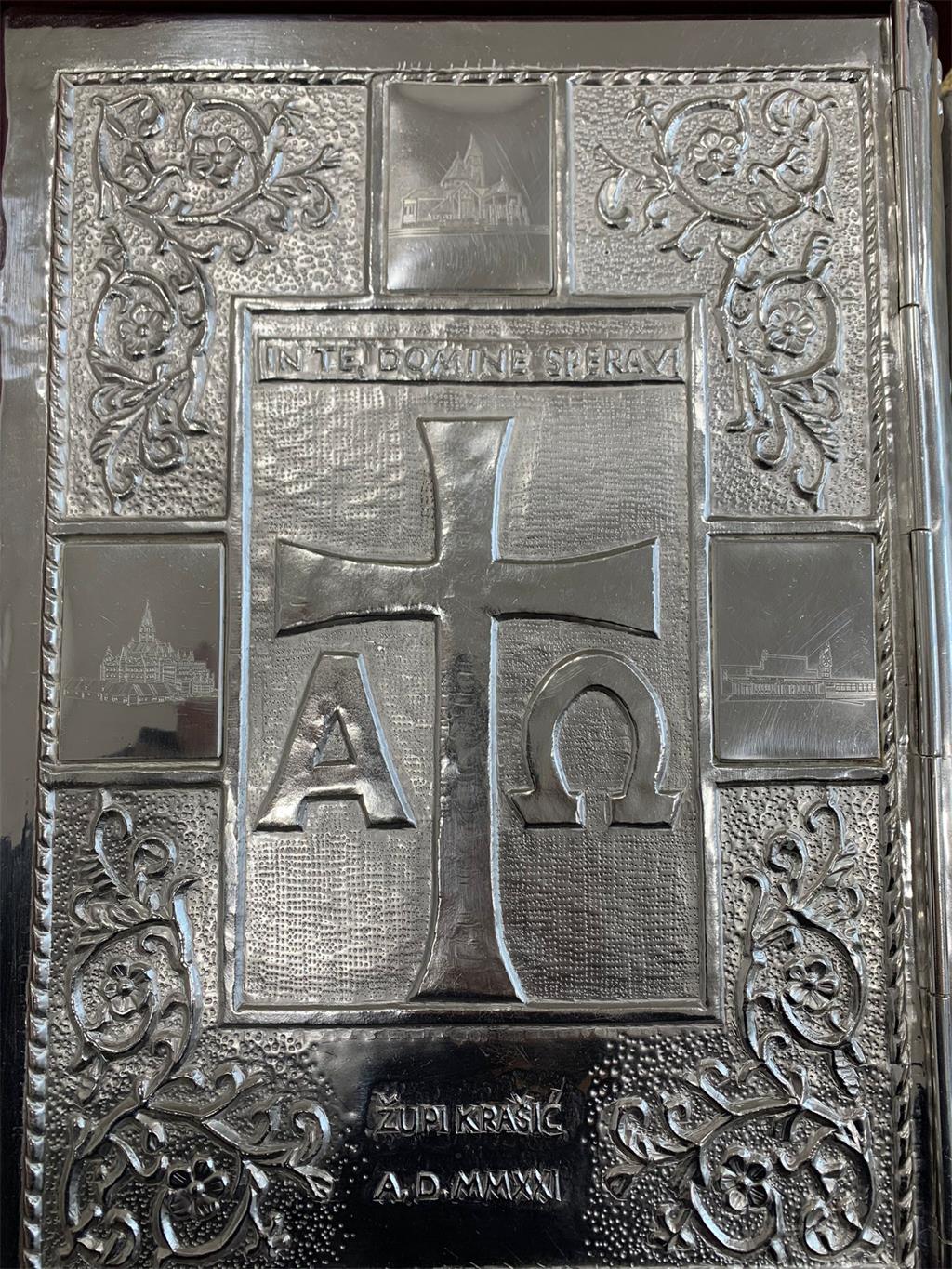 Na završetku mise vlč. Vučak predstavio je nove korice – okove za Evanđelistar, koje su župi na dar i blaženiku u zagovor poklonili rektor Hrvatskoga nacionalnog svetišta sv. Josipa u Karlovcu mons. Antun Sente ml. i rektor Međubiskupijskog sjemeništa u Zagrebu preč. Matija Pavlaković. Vlč. Vučak je u završnom govoru istaknuo da ove godine Postulatura bl. Alojzija Stepinca slavi 30. obljetnicu. Na čelu Postulature je od prvoga dana mons. Batelja, stoga mu je vlč. Vučak zahvalio što „trideset godina istražuje i obogaćuje nas životom bl. Stepinca“. Predvoditelju misnoga slavlja biskupu Mrzljaku darovana je oltarna slika bl. Stepinca.