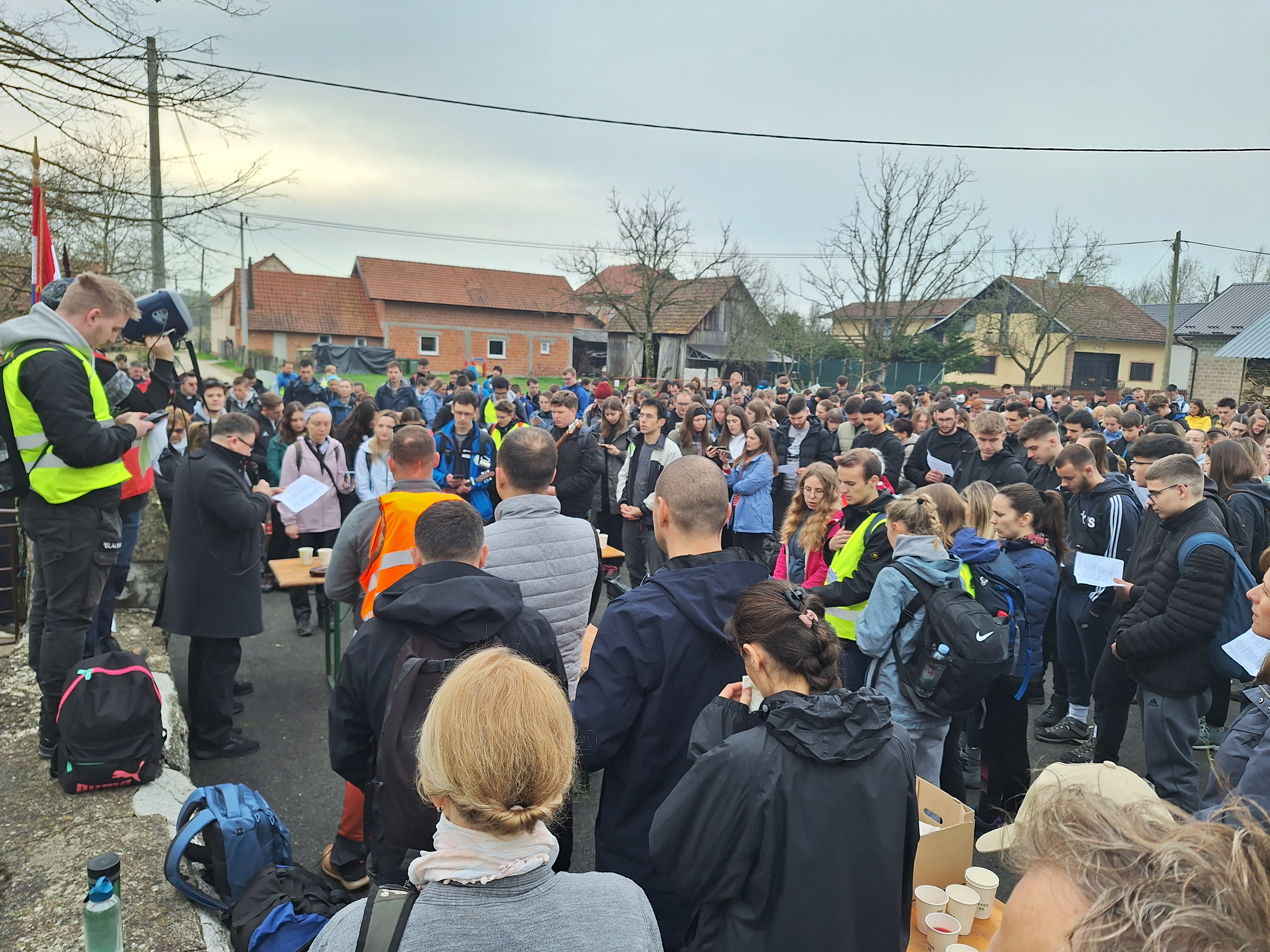 Ispred crkve Svih Svetih u Trgu rano ujutro okupilo se oko 450 hodočasnika, ponajviše mladih, gdje ih je dočekala jutarnja okrjepa pripremljena dobrotom grada Ozlja na čelu s gradonačelnicom Lidijom Bošnjak i Gordanom Basar, ravnateljicom OŠ „Slave Raškaj“ i područne škole „Trg“ te kulturno-umjetničkog društva 'Ključ'.