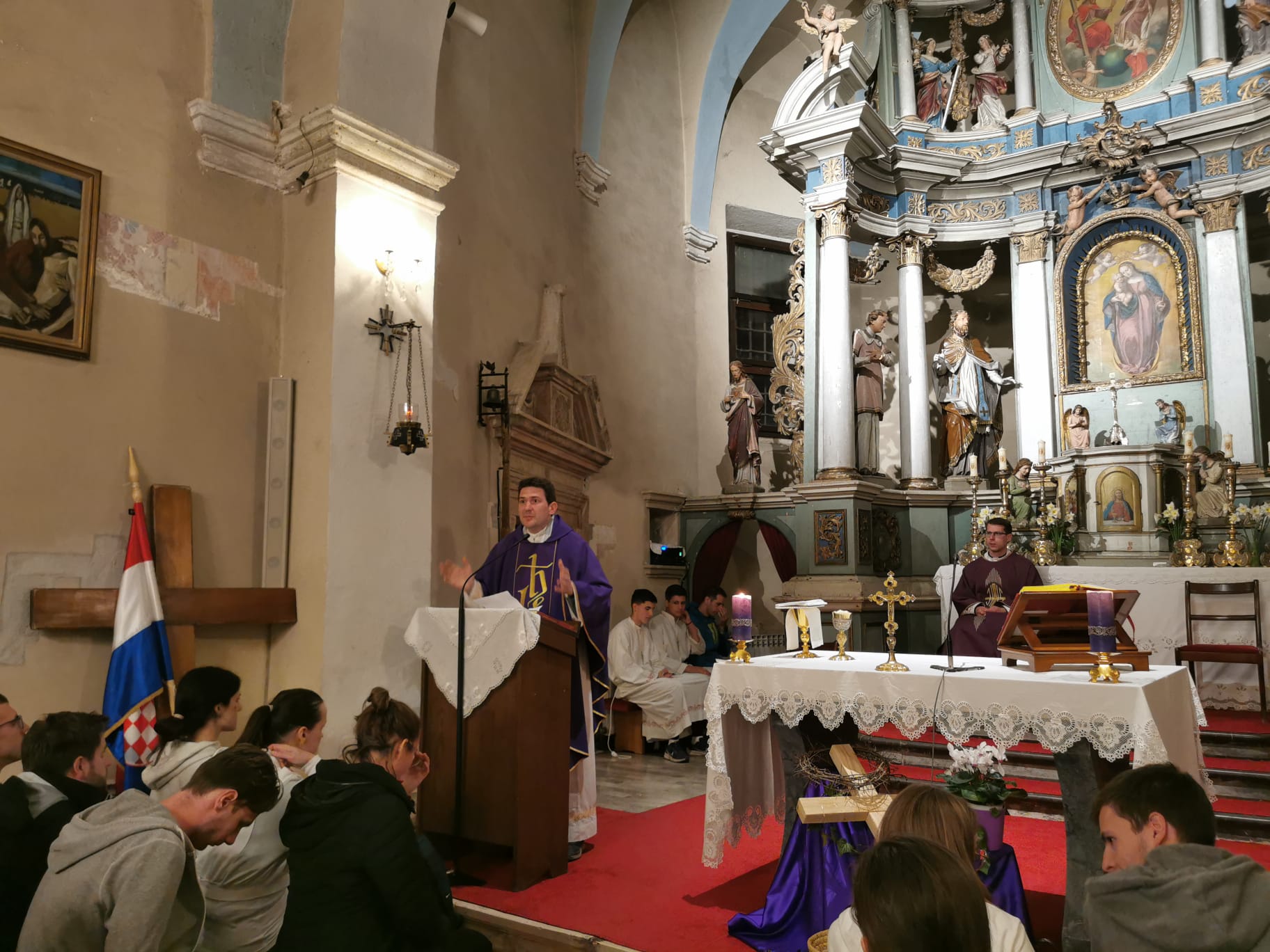 Ovdje je sudionike dočekala bogata okrjepa, spremljena dobrotom župnika vlč. Ivana Vučaka i njegovih suradnika. Nakon smještaja u OŠ Kardinala Alojzija Stepinca i u Vatrogasni dom, koje su hodočasnicima ustupili ravnateljica škole Helena Beketić i DVD Krašić, program je nastavljen u župnoj crkvi Presvetoga Trojstva u Krašiću. Svetu misu predvodio je vlč. Filip Šešek, povjerenik za mlade Zagrebačke nadbiskupije, a propovijedao je vlč. Ivan Vučak, koji je kroz homiliju približio lik i djelo dvaju kardinala (Stepinca i Kuharića) i vlč. Vranekovića te povezao ovaj kraj, bogat brojnim duhovnim zvanjima, ali i svetim obiteljima s mnogo djece, s riječima iz svetog Evanđelja dana: „Ovo je uistinu prorok“, kao primjerima načina istinskog življenja svetog Evanđelja. Potkanuo je hodočasnike da ova dva dana iskoriste za bivanje s Gospodinom i razmišljanje 'Što će biti sa mnom? Na koji način se ja mogu usmjeriti?' uz riječi da štogod odlučili, najvažnije je imati Njega ispred sebe; dopustiti Mu da mijenja naše srce i naše razmišljanje. Homiliju je završio željom da svatko ode svojoj kući obogaćen Duhom Svetim i nadahnut primjerima ovih svetaca koji su krvarili i koji su živjeli raspetu ljubav Isusa Krista, svatko u svom vremenu i okolnostima. Nakon mise uslijedilo je cjelonoćno klanjanje pred Presvetim.