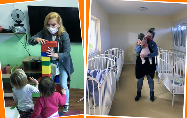 Tijekom proteklih vikenda odgajateljica predškolskog odgoja s. Vesna Stojanović i s. Marija Margarita Klobučar (s. Gita) nesebično su dijelile vrijeme i stručno znanje s korisnicama i zaposlenicama Kuće Ljubavi. Malim korisnicima pružile su toplinu svoga srca, a Caritasovim zaposlenicama veliku pomoć oko brige za povjerene im bebe i mališane. Veliku mjeru veselja donijele su darovateljice koje okuplja višegodišnja prijateljica Kuće ljubavi vlasnica tvrtke „Legalis“ Dalija Zubek i njezin VG LEGACY TIM. Uz njihovu pomoć Kuća je dobila dječje fotelje i putne krevetiće, a 30. listopada stigle su i mekane zaštitne ogradice za krevetiće te mobile.
