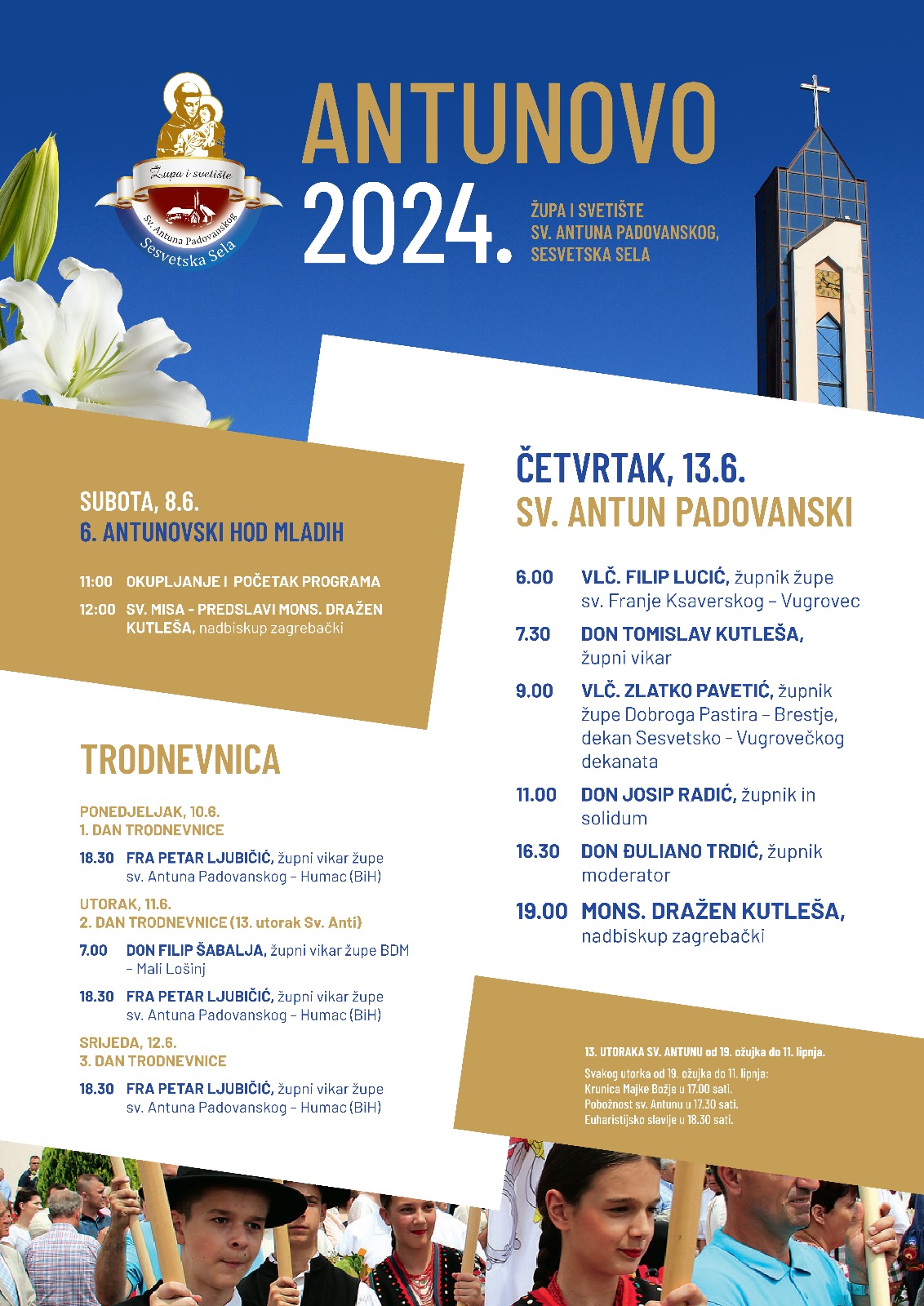 Svetkovina sv. Antuna Padovanskog proslavit će se u župi i svetištu u Sesvetskim Selima u četvrtak 13. lipnja 2024.