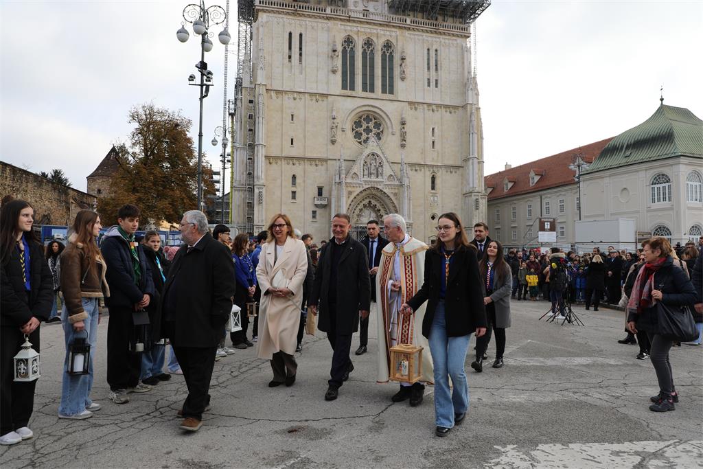 Primopredaja Betlehemskog svjetla mira održana je na drugu nedjelju došašća, 7. prosinca, ispred zagrebačke katedrale u organizaciji Saveza izviđača Hrvatske, koji donošenje Betlehemskog svjetla u Hrvatsku organizira 33. godinu zaredom. Betlehemsko svjetlo dočekali su kanonik Prvostolnog kaptola zagrebačkog preč. Josip Kuhtić i predsjednik Hrvatskog sabora Gordan Jandroković te ga, u zajedništvu s izviđačima, unijeli u Bogoslužni prostor bl. Alojzija Stepinca, ispred kojeg ih je dočekao rektor katedrale mons. Zlatko Koren. Betlehemsko svjetlo uručila je Ana Laušić, članica 28. Samostalne družine izviđača "Dubrava" iz Zagreba.