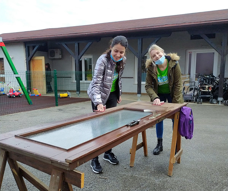 »Unatoč problemu sa kojim smo se suočile (nismo bile u mogućnosti prepiliti drva jer nismo imale potrebnu opremu a ni prijeko potrebnu mušku snagu) nas 5 žena uspjelo je dokazati da se uz trud, volju, zajedništvo i upornost sve što se čini nemogućim može ostvariti. Nakon drva prebacile smo se na čišćenje unutrašnjosti kućice što nas je sve jako pogodilo. Tek kada vidimo u kakvim uvjetima drugi žive, zapravo shvatimo koliko puno imamo i koliko malo cijenimo sve što imamo. Potrudile smo se počistiti sve što je gospodin Frnjo zamolio - uglavnom prebrisati i oribati kuhinjske elemente, stol, štednjak, oprati suđe. I tako je naših 4 sata volontiranja prošlo i brže nego što smo očekivale«, nadodaje Magdalena (20), studentica preddiplomskog studija na Edukacijsko-rehabilitacijskom fakultetu u Zagrebu.
