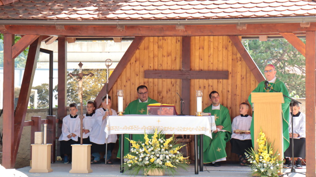 Misa je slavljena na otvorenom uz župnu crkvu sv. Mihaela arkanđela. Koncelebrirali su fra Branko Lovrić, ministar Provincije franjevaca trećoredaca glagoljaša koji pastoriziraju župu i župnik fra Marin Matančić.