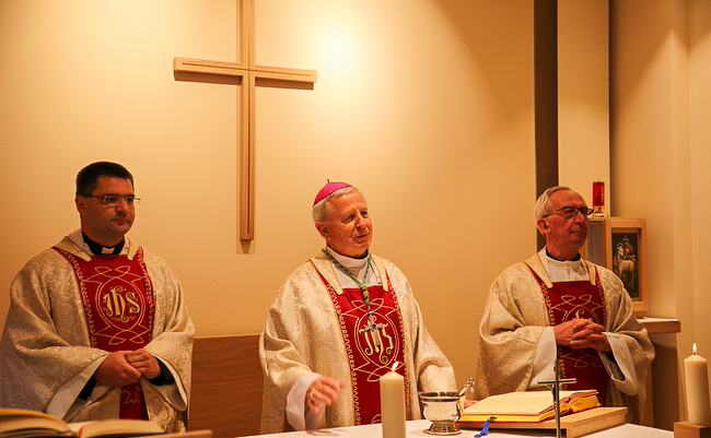 Na početku misnog slavlja biskup Gorski poškropio je oltar, vjernike i zidove čime je prostor trajno posvećen za liturgijska slavlja.