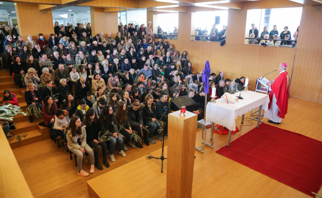Pomoćni biskup zagrebački mons. Mijo Gorski pohodio je na Cvjetnu nedjelju Župu bl. Ivana Merza u Španskom, gdje je u prepunom atriju OŠ Špansko-Oranice predvodio euharistijsko slavlje.