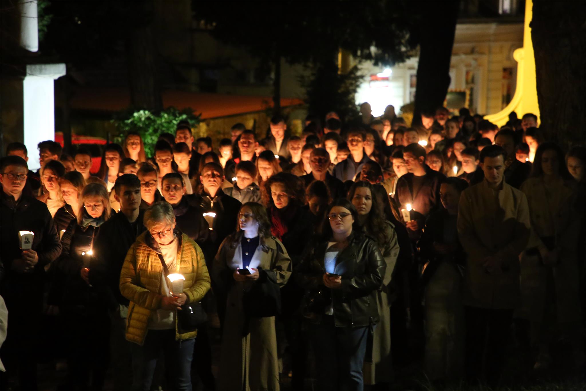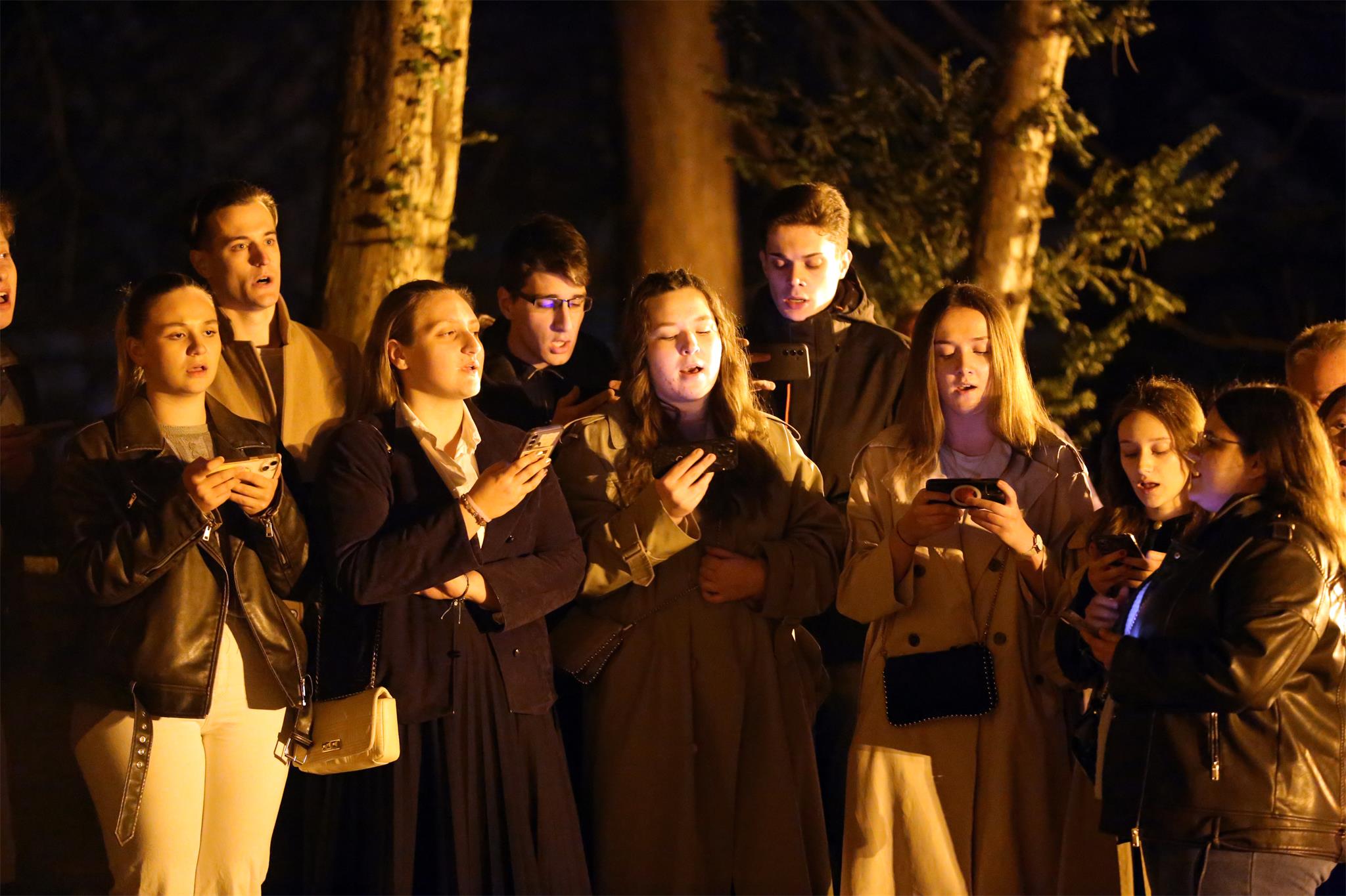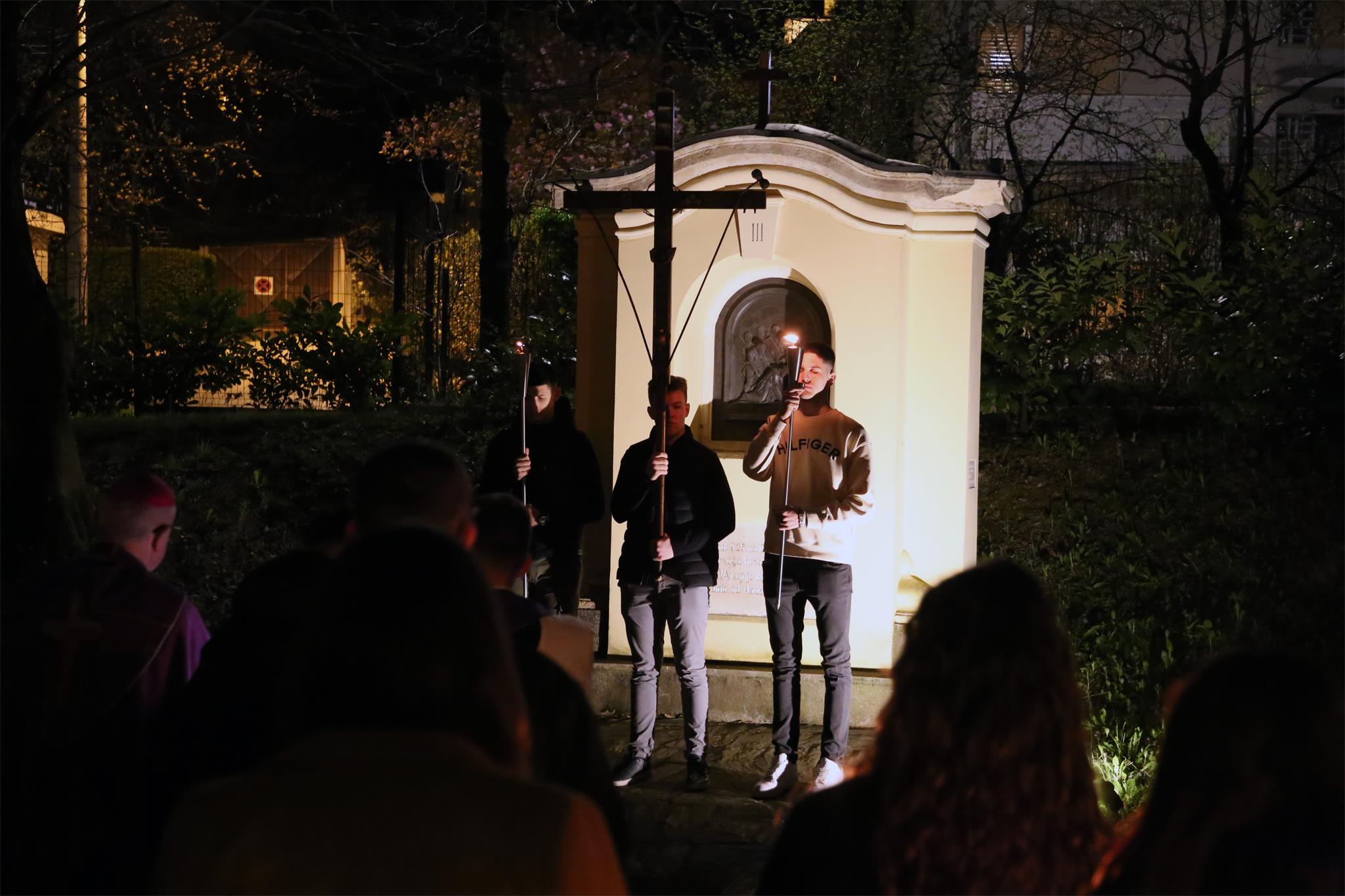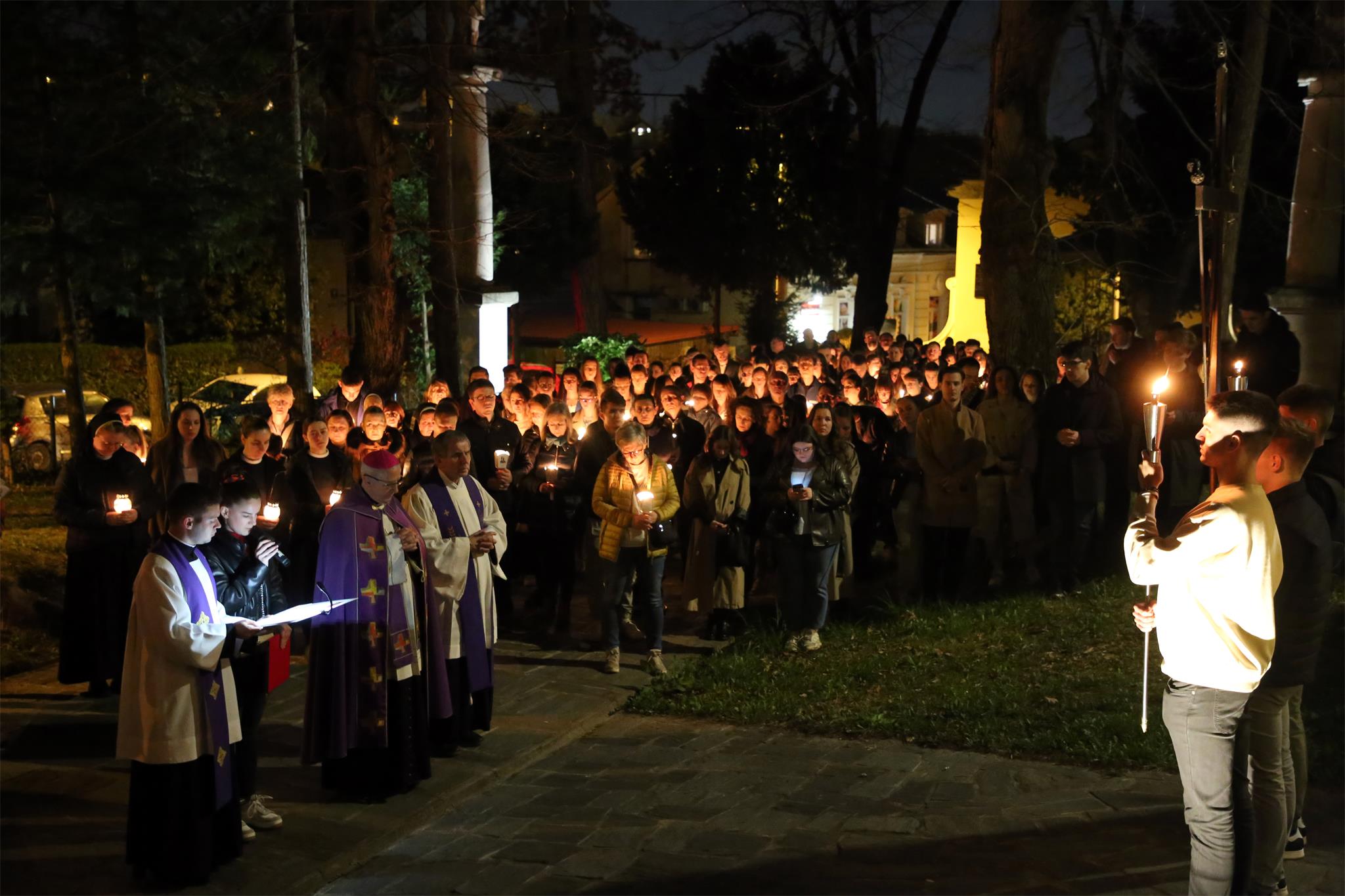 Postaje križnog puta čitali su mladi iz raznih župa Zagrebačke nadbiskupije, a pobožnost je pjesmom animirao Nadbiskupijski zbor mladih.