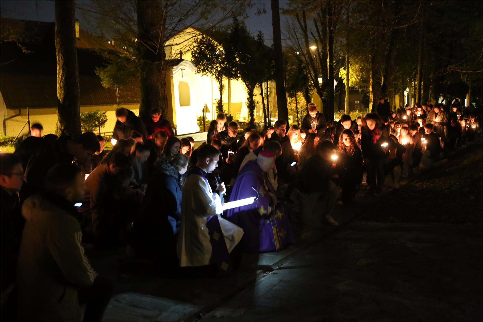 Pobožnost križnoga puta s mladima je molio i imenovani požeški biskup fra Ivo Martinović.
