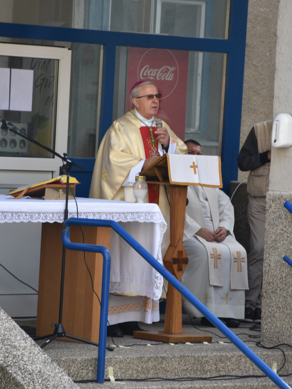 Na početku misnoga slavlja biskup Gorski, prenoseći pozdrave zagrebačkog nadbiskupa kardinala Josipa Bozanića, obratio se okupljenima ovim riječima: "Drago mi je da sam danas ovdje s vama. Nismo u našoj velebnoj crkvi Srca Isusova jer je potres učinio svoje, ali ovi omeđeni prostori naša su trenutna bogomolja pod vedrim nebom. Na tome smo zahvalni! S ovoga mjesta sjećanja mi idu na moje gimnazijske dane od kojih je prošlo punih pedeset godina. Neke od najljepših životnih iskustava i doživljaja nosim upravo iz ovih prostora. Dragi mladi, otvorimo se danas, na početku nove školske godine, Duhu Božjemu. Samo On je kadar u nama činiti velike stvari te nas oduševljavati za dobro i sveto."