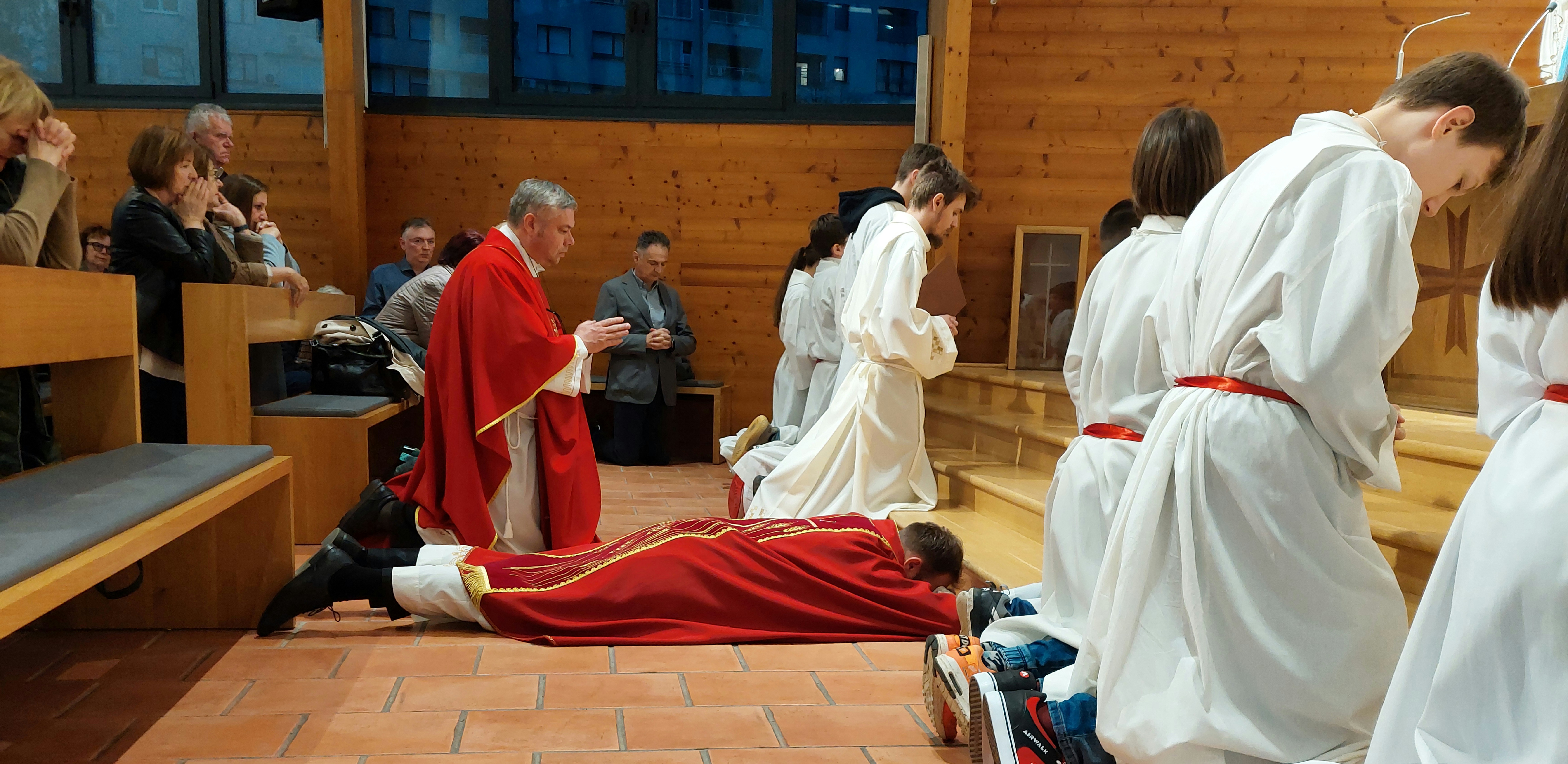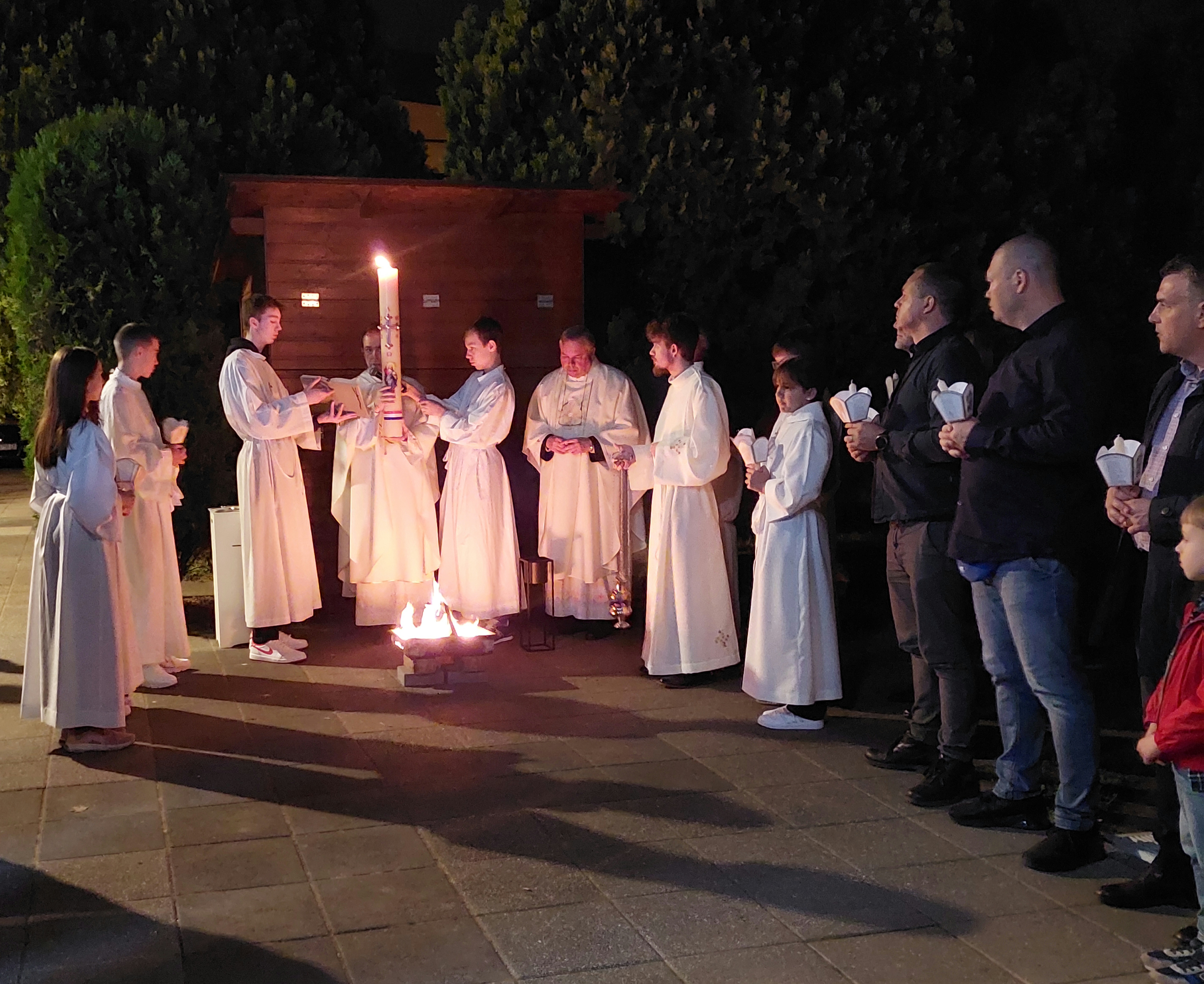 Proslavi Uskrsa prethodili su obredi Velikoga tjedna u kojem su svojim predanim angažmanom sudjelovali brojni župljani. Na misi Večere Gospodnje župnik vlč. Mario Pavić obredom pranja nogu dvanaestorici apostola, župnih suradnika, podsjetio je na ljepotu poniznosti i služenja. U obredima Velikoga petka, čitanju Muke Gospodnje i ljubljenju križa, velik je broj vjernika, suradnika i ministranata iskazao poštovanje i ljubav prema raspetome Isusu. Na Veliku je subotu uz Božji grob tijekom dana bdjelo mnoštvo vjernika, a vrhunac iščekivanja uskrsnuća obilježen je Vazmenim bdjenjem.