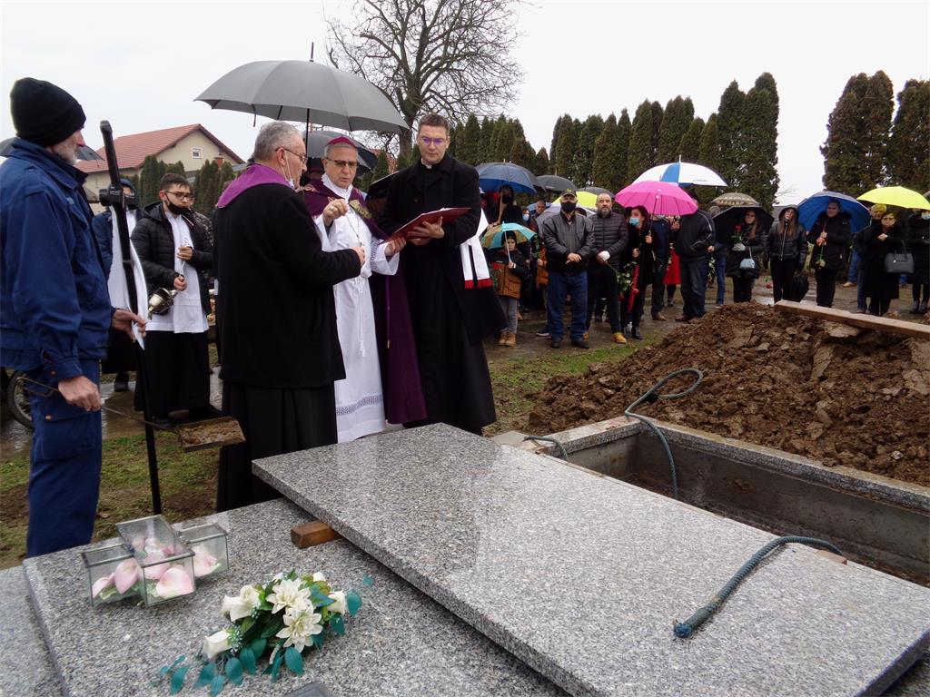 Sprovodni obredi započeli su svetom misom u 12 sati u župnoj crkvi, koju je predvodio mons. Gorski, a koncelebrirali su pomoćni biskup đakovačko-osječki mons. Ivan Ćurić, domaći župnik preč. Antun Knežević te još osam svećenika Zagrebačke i Đakovačko-osječke nadbiskupije.