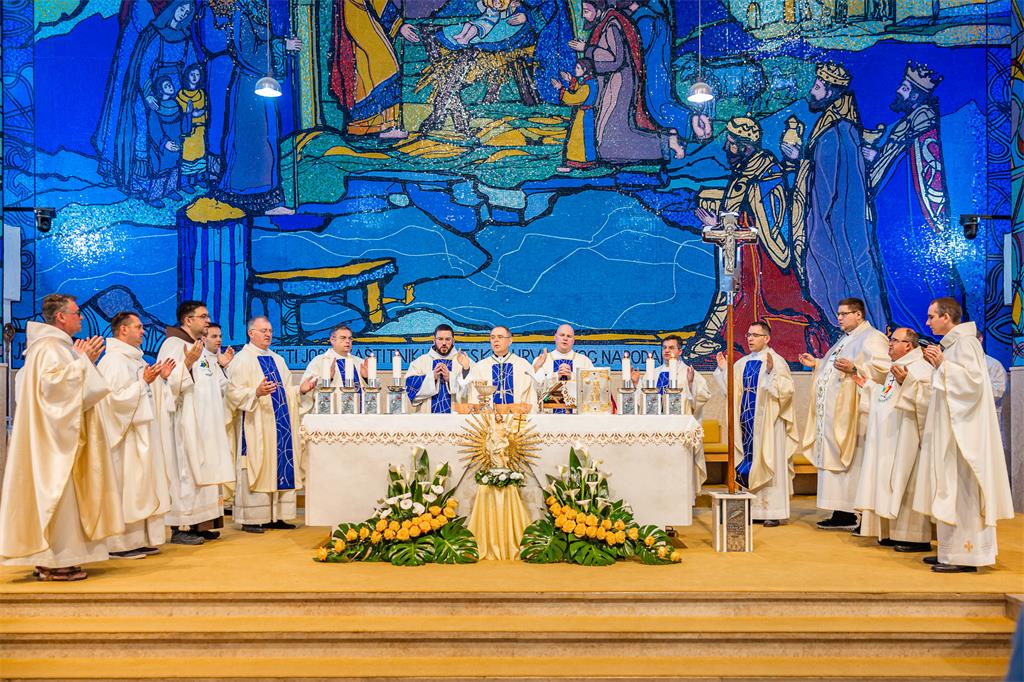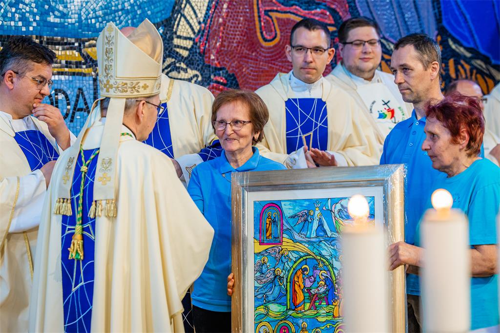 U ime hodočasnika iz mnogih krajeva, dar zahvale, idejnu grafiku za oltarni mozaik u Svetištu, rad akademskog slikara Josipa Botterija Dinija biskup Radošu predali su majka i sin Božica i Davor Spudić te Dragica Ostarčević, troje Josipovih radnika koji već deset godina neprekidno besplatno poslužuju hodočasnike te pomažu pri održavanju i uređenju ljepote Nacionalnog svetišta svetog Josipa.