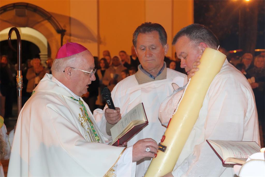 U propovijedi, govoreći o važnosti Vazmenog bdjenja, biskup Razum je istaknuo da u najsvetijoj noći „doživljavamo dramu Kristove pobjede i poziv na obnovu života u vjeri… Ovo slavlje uskrsnuća možemo doživjeti poput drame u četiri čina, koji prate četiri simbola u koje se u ovom slavlju uživljujemo: svjetlo, riječ, voda i kruh. U ta četiri simbola otkriva nam se narav Kristove osobe i njegovo djelo, ono čime se očitovao prema nama. Ali u njima se otkriva i ono što želi usaditi u naše živote kao obnovu našega bića i rasta. Ujedno, to je i poziv da ono što je njemu vlastito, što je on živio kao osoba, živimo i mi, te da to po našim životima bude prisutno u svijetu u kojem živimo.“
