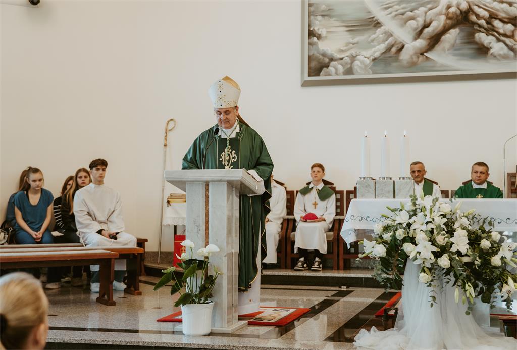 „Ljudi koji stečena dobra koriste da bi pomogli drugima; koji ljudima omogućuju posao, dostojanstvo, brigu za obitelj, ljudi koji ne zgrću da bi bili odvojeni od drugih, nego da bi raslo zajedništvo i da bi se dijelila radost govore o kršćanskoj vjeri koja je zaživjela u stvarnosti. Takvi se ljudi svojim stavom i ponašanjem dive otajstvu života, cijene dar djeteta, brigu za njegov odgoj i rast. Zato je kršćanska kultura početak iz kojega su rasle ustanove škola, bolnica, sirotišta, znanosti, gospodarstva, umjetnosti, svega što je oplemenjivalo ljudski duh i davalo snagu čovjeku za naizgled nemoguća djela. Taj isti duh je potreban i danas našoj hrvatskoj domovini, duh koji se zalaže za istinu, koji prokazuje nepravdu, koji raskrinkava sebičnost“, zaključio je mons. Šaško te zahvalio obitelji Pelivan, župnoj zajednici te „svima koji podupiru darove koji vode prema dobru i čuvaju nadu u našoj Crkvi i domovini“, pozivajući da se ne zaboravi svednevice „bližnjima pružati čašu vode, svježinu Radosne vijesti“.