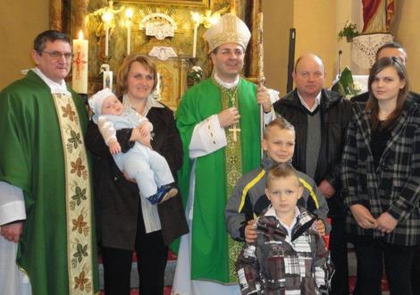 Dolazak biskupa u župu bio je radost za sve župljane, a osobito za obitelj Vukas čije je peto dijete primilo sakrament svetoga krštenja.