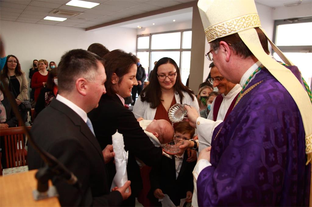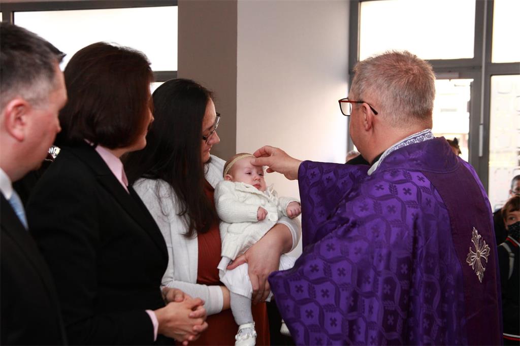 Obitelji Katić mons. Šaško je poručio: “Donijeli ste danas na ovo krštenje svoje peto dijete, ali i svoje srce u koje je Bog stavio svoj smisao i svoju ljubav. Nas raduje svaki rođeni život, ali ključ nije u samom broju, nego u srcu. Ako će biti srca, bit će i ljubavi.”