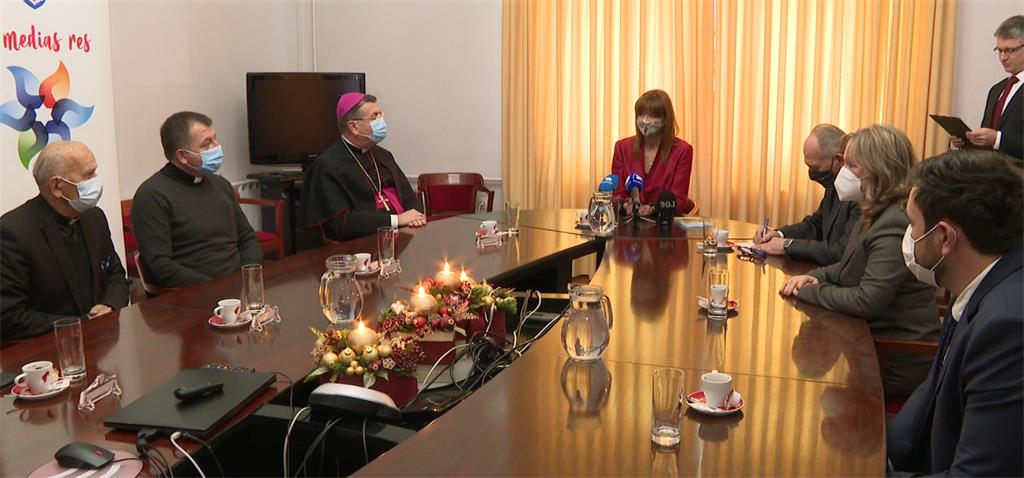 Biskup Šaško poklonio je županici fotomonografiju u kojoj su zabilježene posljedice potresa u Zagrebačkoj nadbiskupiji te Kraševu Zagrebačku katedralu bijeloj čokoladi. "Jedan od simptoma bolesti 'Covid-19' je gubitak mirisa i okusa. I znamo koliko je teško živjeti takvu neutralnost. Zato ovdje stavljam naglasak na okus i želim da u svome djelovanju budete okus i miris dobrote koju je donio Isus. Potres i bolest dovode do destrukcije koja unosi strah i tjeskobu. Kada lomimo čokoladu i dijelimo ju s drugima događa se destrukcija koja ljude povezuje i raduje. I Krist je došao da bi sebe darovao, bio lomljen kao hrana života. Ne zaboravimo da je upravo dolaskom u Europu čokolada od gorkoga napitka postala slatka. Nastavimo tako živjeti, Božićno, pazeći da ne budemo neutralni, nego slatka i radosna prisutnost u trenutcima gorčine i tuge", poručio je na kraju biskup Šaško.