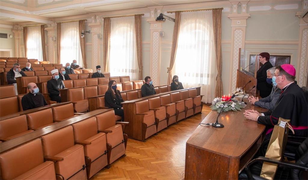 Nakon susreta kod županice Furdek Hajdin, predstavnici crkvenih zajednica okupili su se na prijemu kod gradonačelnika grada Karlovca g. Damira Mandića.