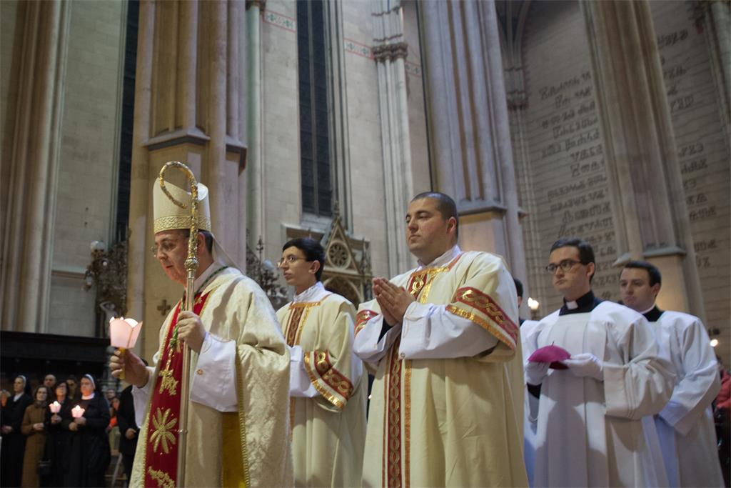 Slavlje je započelo blagoslovom svijeća kod ulaza u katedralu te procesijom s upaljenim svijećama. U uvodu slavlja, okupljenim redovnicama i redovnicima te vjernicima laicima koji žive posebnu posvećenost Bogu, biskup Šaško prenio je molitve, zahvale i čestitku zagrebačkoga nadbiskupa kardinala Josipa Bozanića.