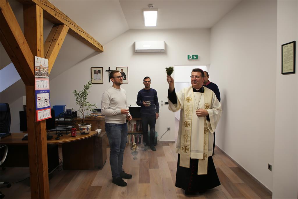 Nakon zajedničke blagoslovne molitve biskup Šaško je u pratnji djelatnika uz molitvu i pjevanje božićnih pjesama obišao uredske prostorije te ih poškropio blagoslovljenom vodom.