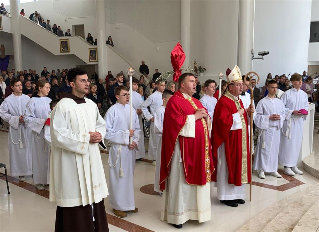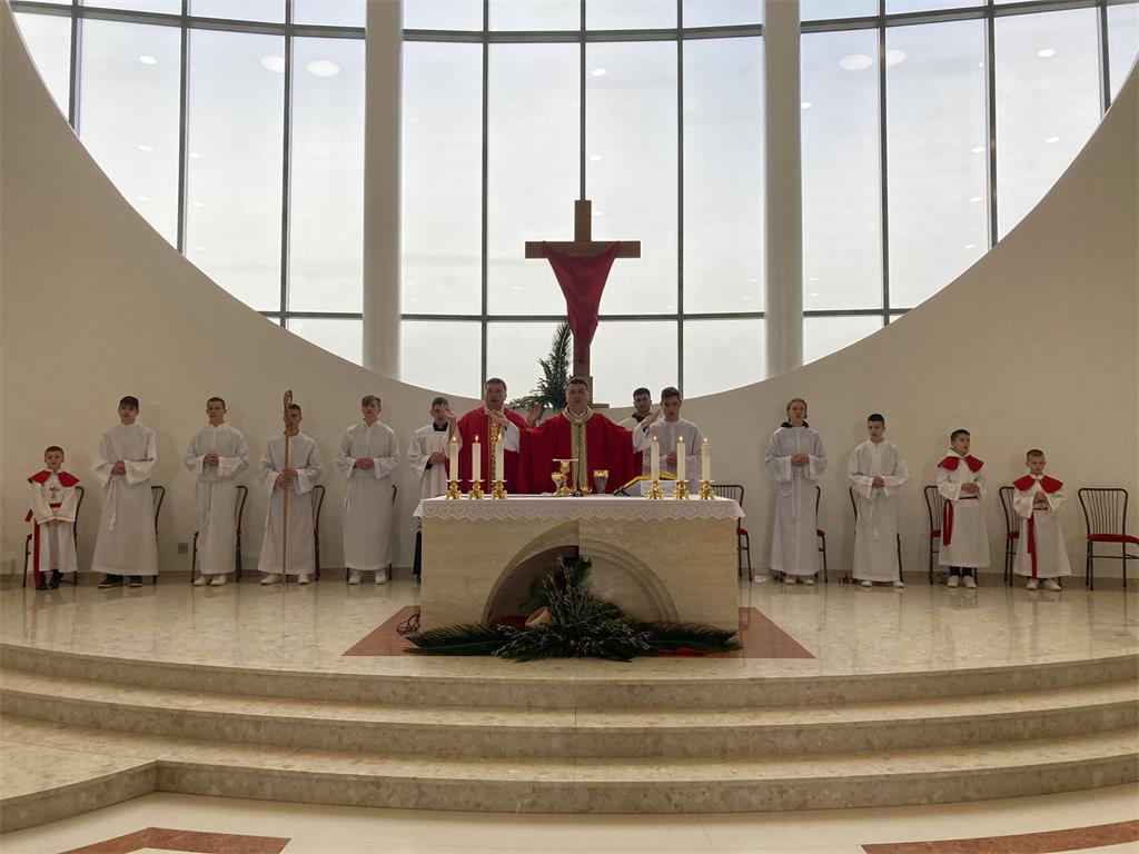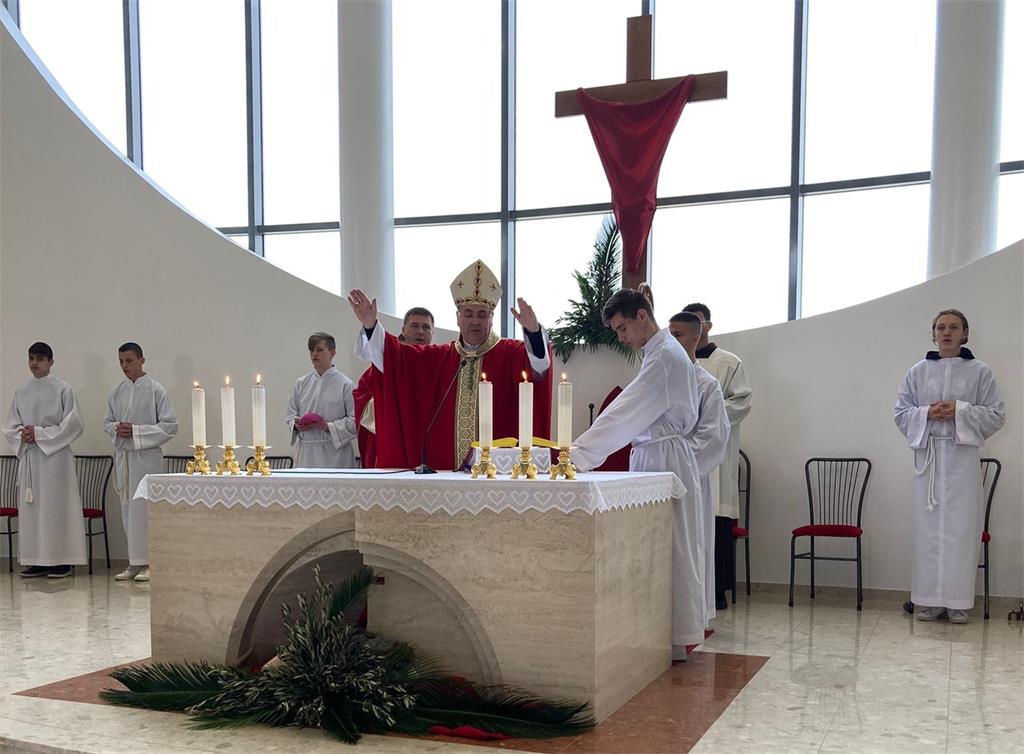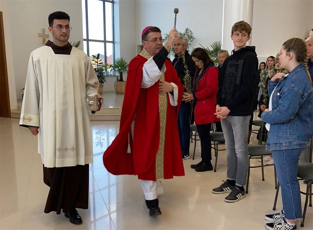 Biskup je istaknuo kako je Kristov ulazak drugačiji od svih. "U svojoj vjeri ga se spominjemo sa zahvalnošću i u njega unosimo sva naša iskustva, moleći da u nasljedovanju Gospodina na njegovu križnom putu imamo udjela u njegovu uskrsnuću." Prije blagoslova maslinovih grančica biskup Šaško rekao je kako su one "znak prepoznavanja Krista kao Spasitelja i ujedno znak da smo svi grane izrasle iz istoga drveta križa, drveta poniženja, drveta života i uskrsnuća."