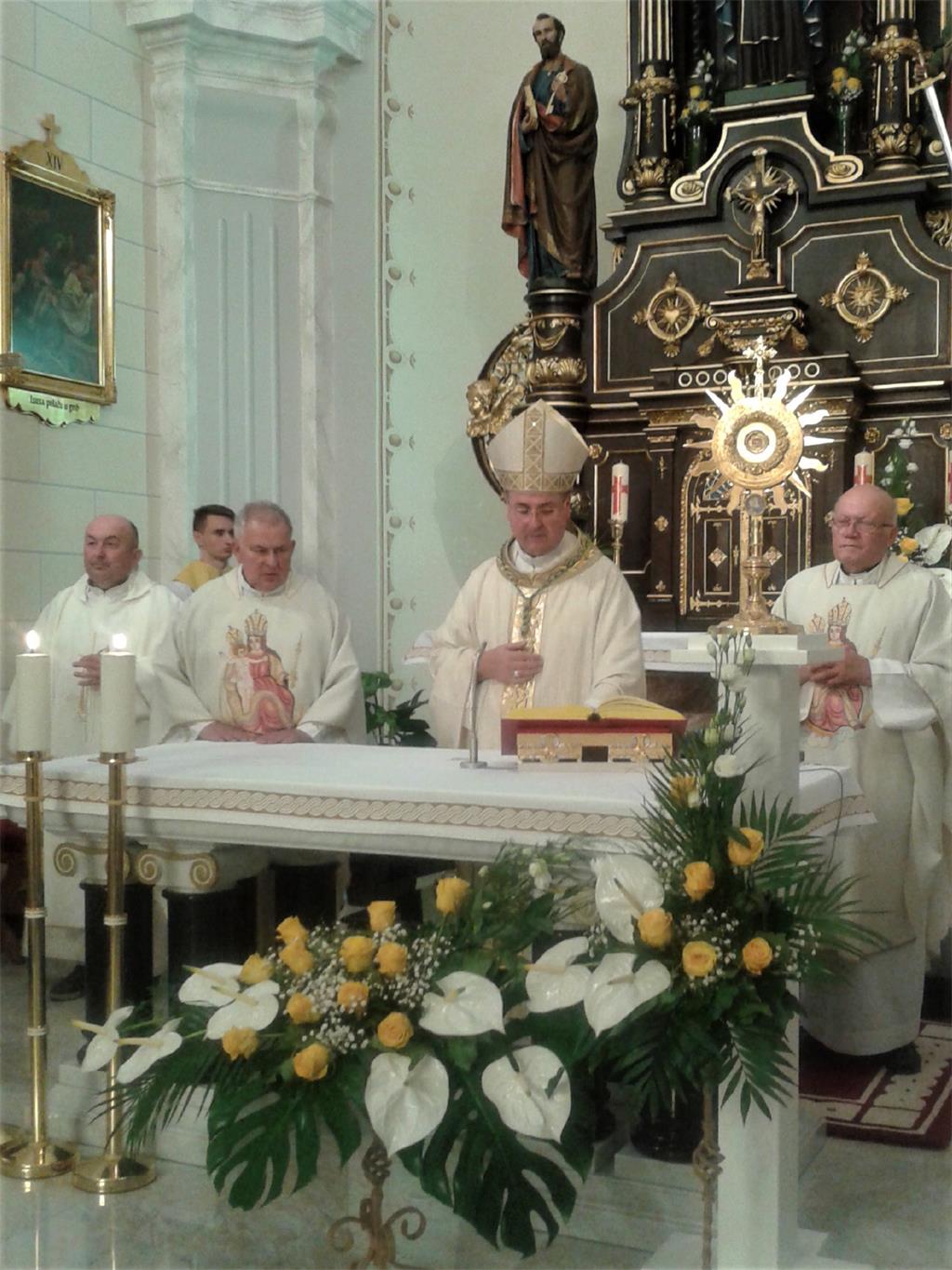 Na početku euharistije župnik vlč. Darko Pužin biranim je riječima pozdravio preuzvišenoga oca Biskupa, subraću svećenike, ministrante, čitače, župni mješoviti zbor, župne suradnike, okupljene župljane i hodočasnike, a poseban je pozdrav upućen gosp. Tomi Medvedu, potpredsjedniku Vlade RH i ministru hrvatskih branitelja te gosp. Ivanu Ćeliću, zastupniku u Hrvatskom saboru, zahvalivši svima što su „usred ljetne žege našli vremena i dobre volje učiniti odmak od uobičajenoga dnevnoga radnog ritma da bismo čuli ljubljeni glas Isusa Krista, božanskog zaručnika svete Klare djevice, koji neka progovori i našim srcima, da budemo s Kristom uvijek i u svemu.“