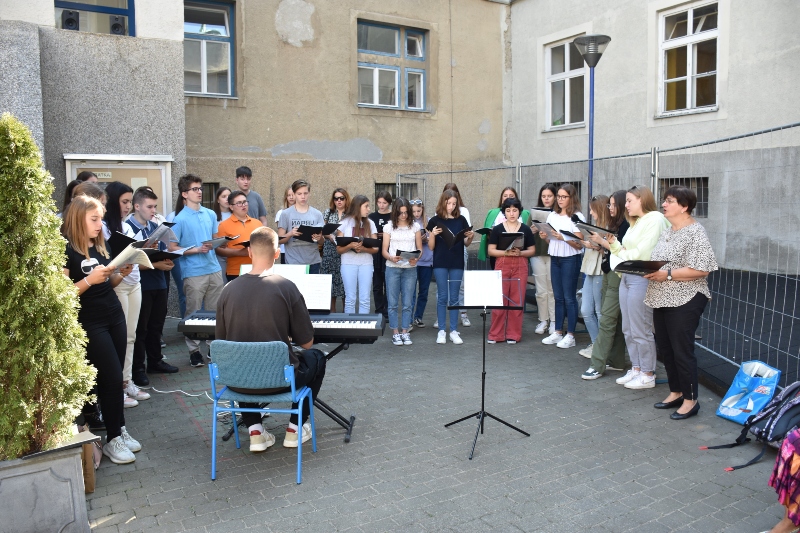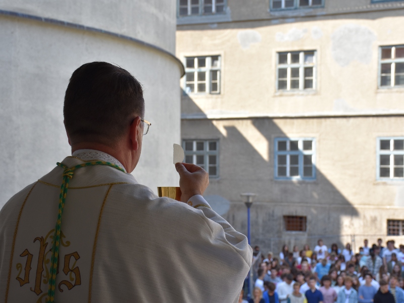 U ponedjeljak 5. rujna ove godine nova školska i vjeronaučna godina 2022./2023. započela je euharistijskim slavljem i zazivom Duha Svetoga u dvorištu Nadbiskupske klasične gimnazije s pravom javnosti na zagrebačkoj Šalati za učenike, profesore i djelatnike Gimnazije.
