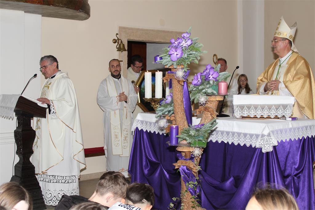 Na početku misnoga slavlja biskup Šaško pozdravio je sve okupljene kazavši: "Župna je zajednica obitelj povezana jačim vezama i od najjačih zemaljskih povezanosti jer živi od Božjega Duha. I kao u obiteljima, i u drugim zajednicama koje čuvaju snagu spomena, tako i u župnoj zajednici - još i puno dublje - slavlja svetih zaštitnika vraćaju na izvorište, prepoznaju darove Božje prisutnosti, obnavljaju snagu i smisao. Pritom je nužan pogled prema prošlomu koji se tamo ne zaustavlja. Naime, povijest je živa onda kada se iz nje rađaju novi obzori. S tim raspoloženjem gledamo i život svetoga Franje, neodvojiv od Krista - radi novih obzora koje nam Gospodin otvara i u došašću nam pomaže da budemo osjetljiviji, pozorniji na malenosti!"