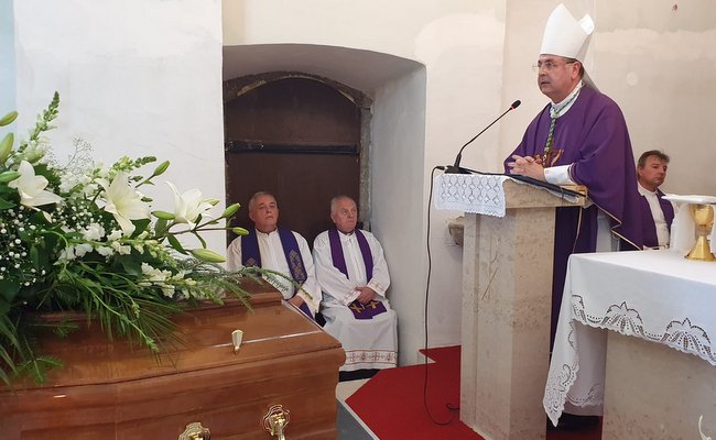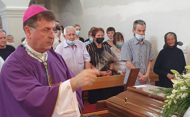 „To troje smo došli i danas učiniti: uspeti se, ostati i sići. Gledamo lijes s tijelom koje je prolazno, ali s tijelom koje će Gospodin preobraziti; gledamo svoju malenost po kojoj Bog čini velika djela; gledamo ranjenost tugom rastanka koja naviješta radost ponovnoga sastanka, ukapamo tijelo svoga subrata u zemlju, da bismo jasnije vidjeli nebo… “, rekao je na kraju homilije biskup Šaško.