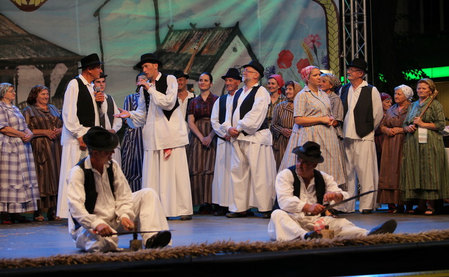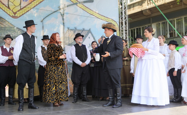 Oni su na svečanoj bini u prigodnoj slici s domaćinima „salaša“ dočarali kako je nekoć izgledala obiteljska Dužijanca na bunjevačkim salašima. Bandaš je „obavijestio“ domaćina da je žetva gotova te mu je predao vijenac od pokošenog žita koji je isplela bandašica a koji je on nosio na šeširu. Zatim je domaćica salaša poškropila bandaša i bandašicu vodom i mekinjama da i iduće godine pšenica bude čista kao voda i da je bude puno kao mekinja. Zatim je bandašica gradonačelniku predala kruh koji je bio blagoslovljen na misi zahvalnici.
