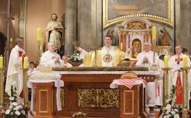 U propovijedi biskup Šaško osvrnuo se na Isusove riječi „Ne boj se malo stado! Gdje vam je blago, ondje će vam biti i srce. Blago onima koje gospodar, kada dođe, nađe budne. Kome je mnogo povjereno, više će se od njega iskati“, napomenuvši kako u njima možemo čitati i najveće zapreke za ljudsku sreću i nedostatke u našim suvremenim društvima. „No, Isus nam daje sebe i Radosnu vijest da bismo se trajno vraćali na ispravan put, naime onaj koji vodi prema ispunjenosti koja liječi bolesti naše suvremenosti“, istaknuo je biskup Šaško. Taj Isusov odgovor vidi i u Dužijanici koja je sažetak mudrosti, životnoga iskustva, ljudskih očekivanja i kulturalnih oblika, sposobnih prenositi duboki smisao.