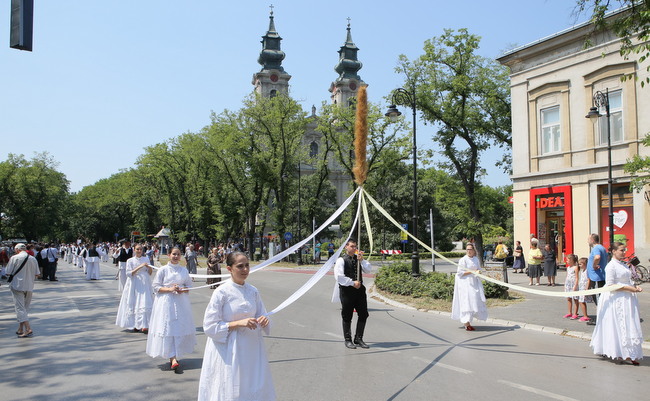 Poslije mise krenula je „svečana povorka“ na čelu koje je uz organizatore išao biskup Šaško s drugim uglednim gostima Dužijance 2019. Slijedili su konjanici, svečane zaprege, te brojni stari, mladi i djeca i čitave obitelji u narodnim nošnjama. Ulicama grada Subotice prošli su i članovi pojedinih Kulturno-umjetničkih društava, kako subotički tako i gostujućih. Vrhunac povorke činili su bandaši i bandašice iz svih mjesta u kojima se slavi Dužijanca, pratioci bandaša i bandašice te katedralni mali bandaš i bandašica i konačno bandaš i bandašica 109. dužijance Pavle Horvacki i Snežana Skenderović.