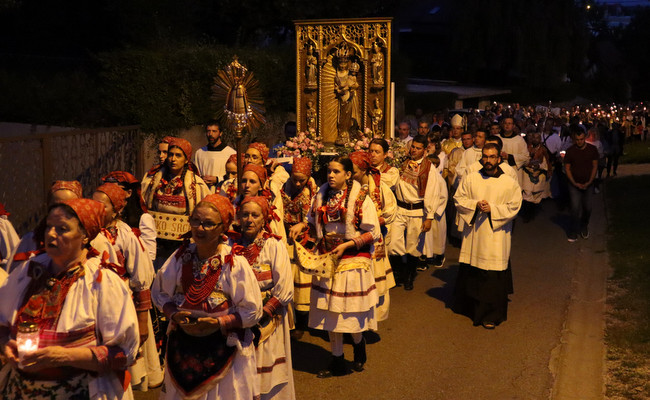 Procesija je, nakon misnoga slavlja, krenula s prostora crkve na otvorenom ulicama župe, a kip su nosile djevojke i mladići u narodnim nošnjama. Brojni su vjernici svoje kuće okitili tradicijskim ukrasima i cvijećem te se priključivali molitvi i pjesmi. Kip je na kraju svečano unesen u remetsku crkvu gdje je biskup Šaško izmolio završnu molitvu i poručio: “Zastali smo ovdje da bismo se sjetili da smo stvoreni na Božju sliku i da nam je Gospodin podario ljepotu neba koju nosimo. Krista smo zaodjenuli i gledamo Marijin lik, ojačani u pozivu da mi u svijetu odražavamo Kristov lik i prenosimo Marijin osmijeh Neba zemlji. Molimo i sada, kao što smo molili i na ulicama iznad našega glavnog grada, za sve one koji ne vide Božju prisutnost u svome životu, da im mi budemo odsjaj Božjega lica po dostojanstvu koje nam je dano.”
