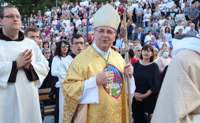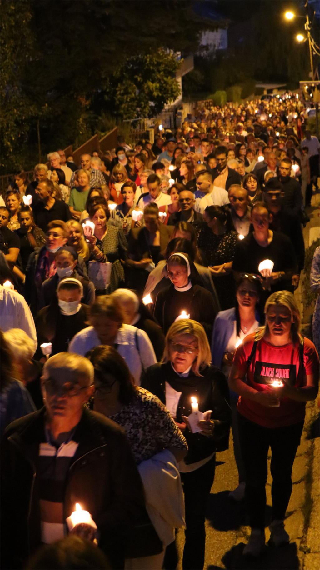Podsjetio je na procesiju s Gospinim likom koja je uslijedila nakon mise i kazao: “Siguran sam da večeras nitko neće biti ravnodušan, netko zbog jedinstvenosti događaja, netko zbog zahvale ili molbe, netko zbog ponosa ili nade. Hodat ćemo u pjesmi i molitvi s dragim nam likom koji je nadahnjivao kršćanske vjernike da svjedoče Kristovu ljubav naraštajima pred kojima osjećamo poniznu zahvalnost, pred likom u kojem ćemo prepoznati Isusove riječi ‘Evo ti Majke’ ili ćemo uputit molitvu ‘Pogledaj na nas, na naše živote i potrebe’. Ipak, dok Marija prolazi pored domova, ne govorimo samo o njoj, govorimo o sebi, da smo Crkva, da smo Kristovo tijelo po kojem drugi mogu prepoznati Boga, Onoga koji je s nama, Emanuela, u našoj ljudskoj krhkosti. Jer Kristov i Marijin lik najljepše odražavaju upravo oni ljudi koji su prožeti euharistijom. Crkva koja živi snagom duha i donosi Marijin osmijeh kao lijek svim ljudskim ranama.”
