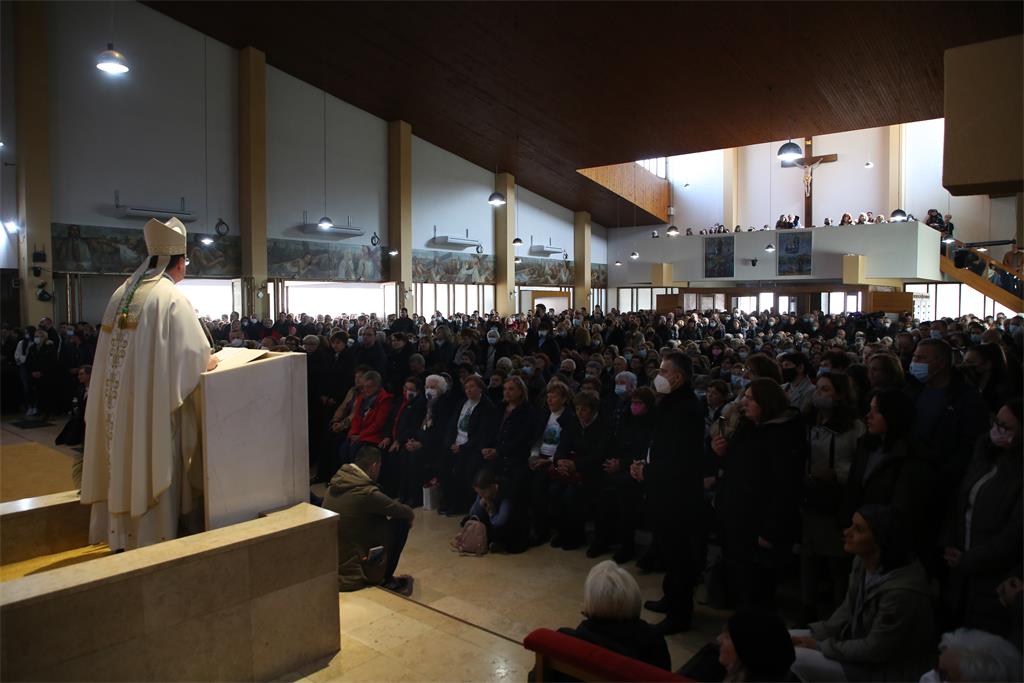 Na osobit način biskup Šaško spomenuo je obitelj. "Sadašnjost i budućnost svijeta odlučuju se na pitanju obitelji. Tako je bilo tada, tako je i danas. Budućnost svijeta stane u zagrljaj života u poniznoj hrabrosti ljudi koji se vole."