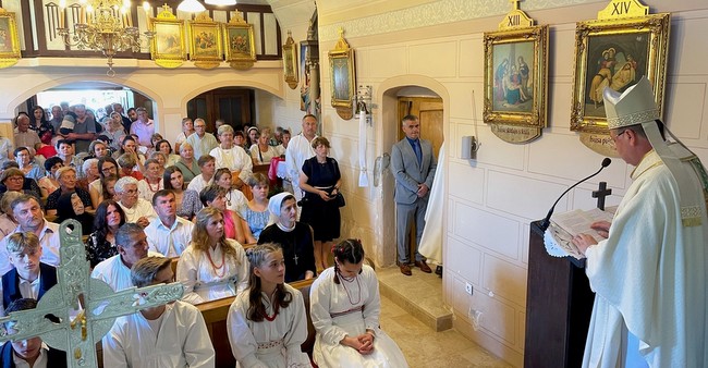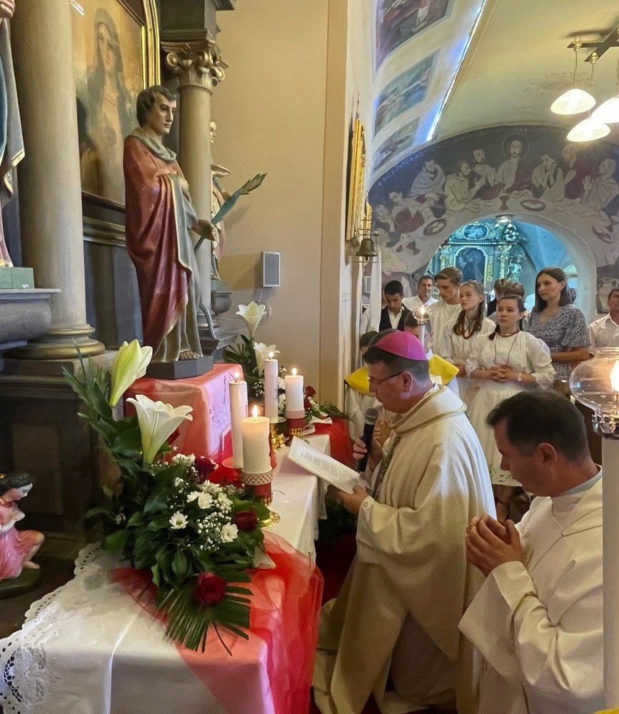 Biskupa i sve okupljene je pozdravio i zaželio im dobrodošlicu krizmanik Petar Marok. Osim podjele sakramenta svete potvrde, proslavljen je i blagdan sv. Vida. Biskup Šaško se u homiliji osvrnuo na potrebu osobnog opredjeljenja s obzirom na osobu Isusa Krista. Kao što je pitao svoje učenike, tako i danas pita nas: