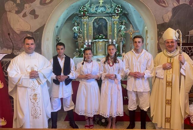 „A vi, što vi kažete, tko sam ja?“ Krizmanicima je poručio da vjeru koju su primili sada trebaju životom svjedočiti. Na tom im putu uzor može biti sv. Vid. On je mučeničkom smrću pokazao neizmjernu ljubav prema Kristu.