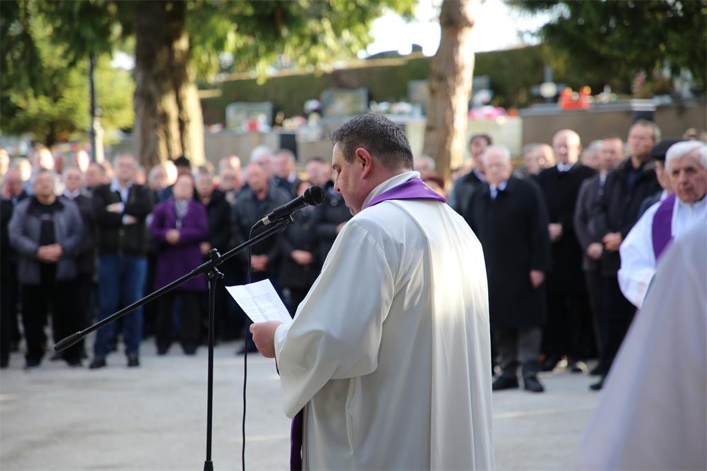 Biskup Šaško u uvodnim riječima istaknuo je da "smo ovdje pred jednim životom koji je na zemlji trajao sedamdeset i sedam godina, od čega su pedeset i dvije godine svećeništva. Ovdje smo pred zvanjem kojemu je temeljno poslanje naviještati da ljudski život nije stvoren za raspadljivost prolaznoga, nego za besmrtnost i ispunjenost u Božjemu zagrljaju" te nadodao da je "sav kršćanski život obilježen upravo vjerom da je Krist pobijedio smrt i čovjeku otvorio vrata novoga života koji nema kraja. I u toj vjeri nastojimo živjeti svoje dane na ovome svijetu, u radosti što nam je Bog darovao svoga Sina i po njemu Duha Svetoga, da nas tješi u svakoj našoj kušnji i nevolji te da čuva pogled naše duše u sigurnosti zajedništva sa svetima i pokojnima u nebeskoj slavi."