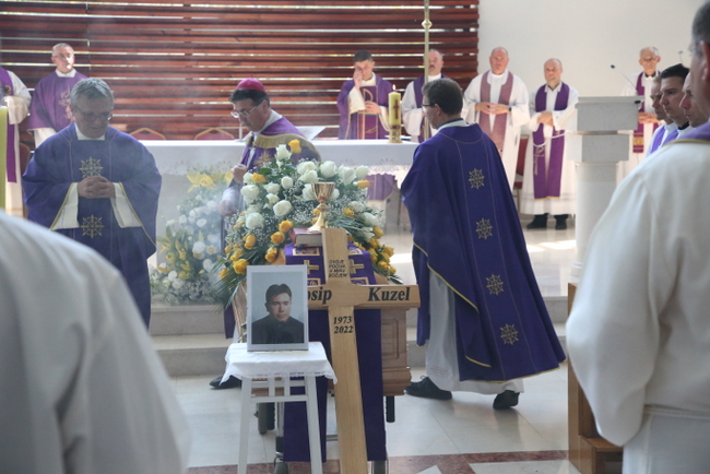 Na kraju homilije biskup Šaško je podsjetio kako je vlč. Kuzel ipak najviše sebe ugradio u zajednicu i u crkvu Uzvišenja svetoga Križa u Dugome Selu: „Privučen tim križem, naviještao je i svjedočio križ Gospodinov. Neka sada živi u sjaju njegove proslave koja je uprisutnjena u vazmenoj svijeći pored lijesa! Križ je takav da nudi neočekivanost; da nudi ljepotu tamo gdje se čini da je ljepota nestala. Takva je i njegova smrt. Neočekivana, po ljudskim mjerilima neprimjerena, prerana. Ali, tko smo mi da dajemo takvu mjeru? Samo stvorenja koja se mogu ljutiti i jadikovati, ali možemo dati hvalu i otkrivati ljepotu križa po daru Kristove blizine, po našoj pritjelovljenosti Kristu. Josip je gradio prostore za stvarnost koja nadilazi svaki prostor; živio je vremenitost otvarajući ono što vrijeme ne može obuhvatiti. Ne svojom snagom nego Kristovom. Premda po godinama svećeništva još uvijek mlad, djelovao je kao čovjek koji je susreo život u puno njegovih očitovanja. Odatle je dolazila privlačna smirenost, pristupi životu koji nisu bili površni, nego staloženi, zaogrnuti sigurnošću da Krist svojih ne ostavlja i da ponavlja: drago mi je da si tu.“